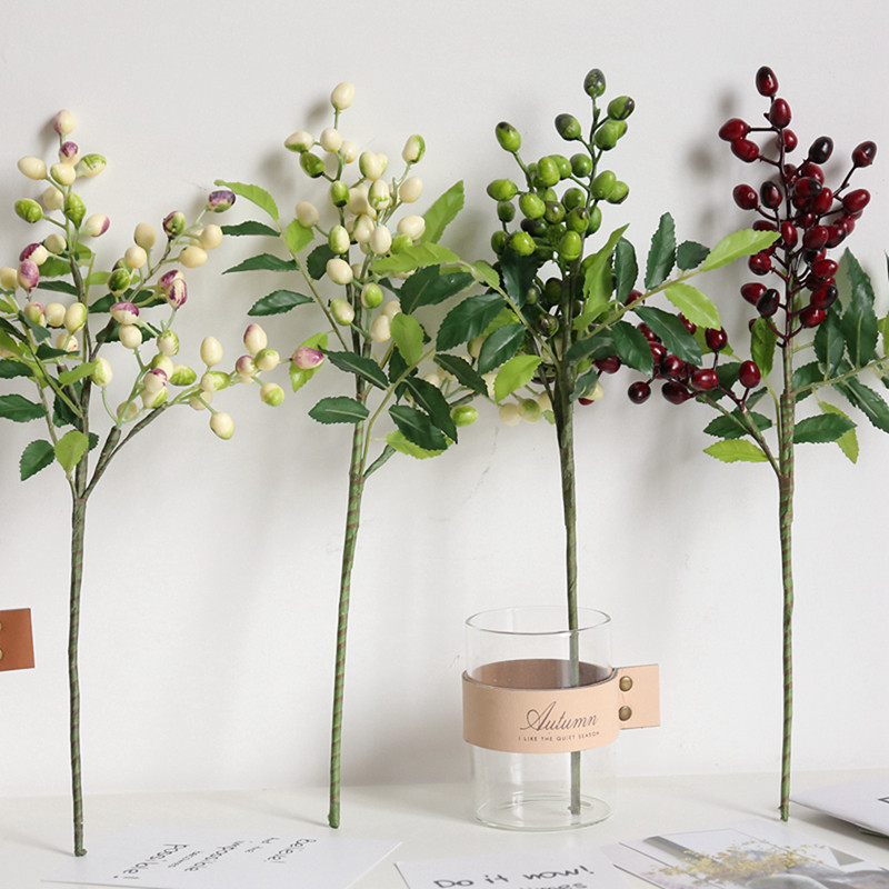 饰花假花摆件摆设 仿真绿植橄榄果红果子浆果豆枝家居客厅圣诞节装