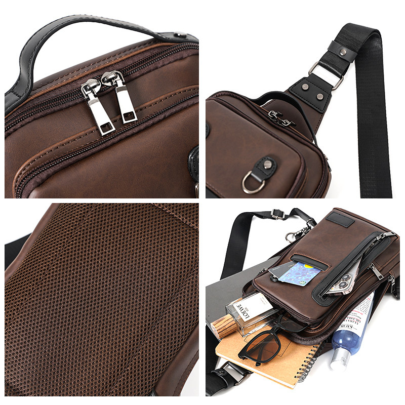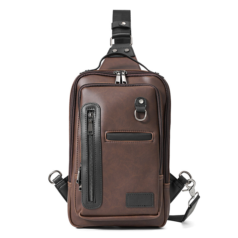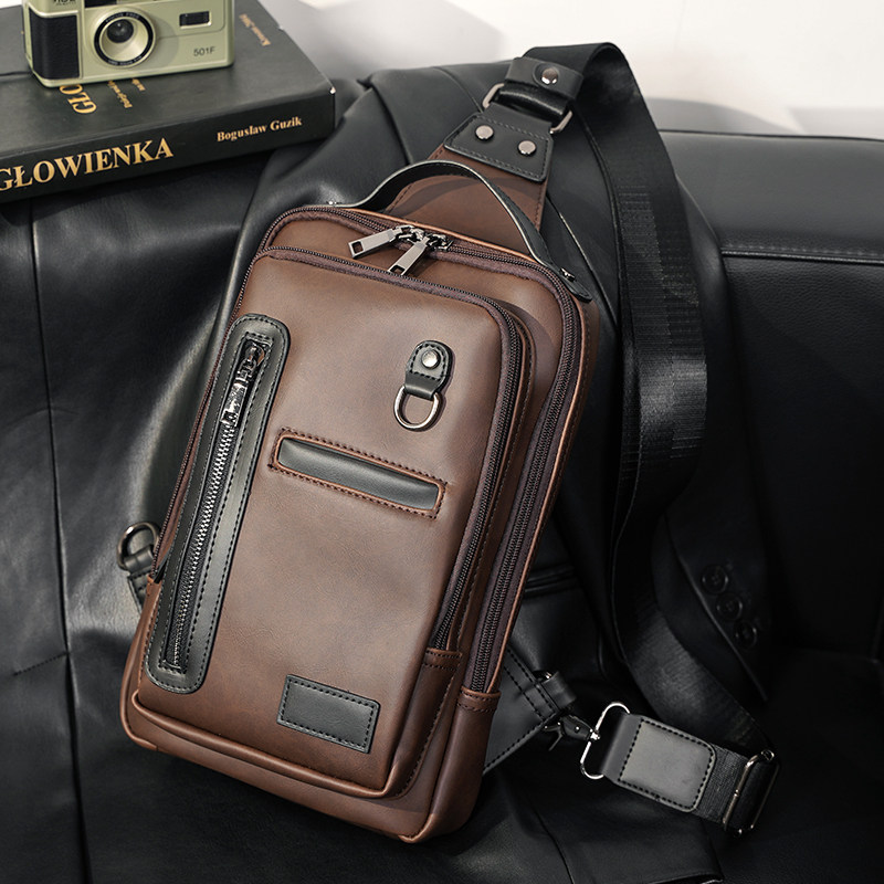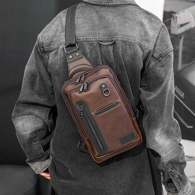 胸包 男士 新款 休闲单肩斜跨包 定型款 疯马胸前包 潮流撞色男士 韩版
