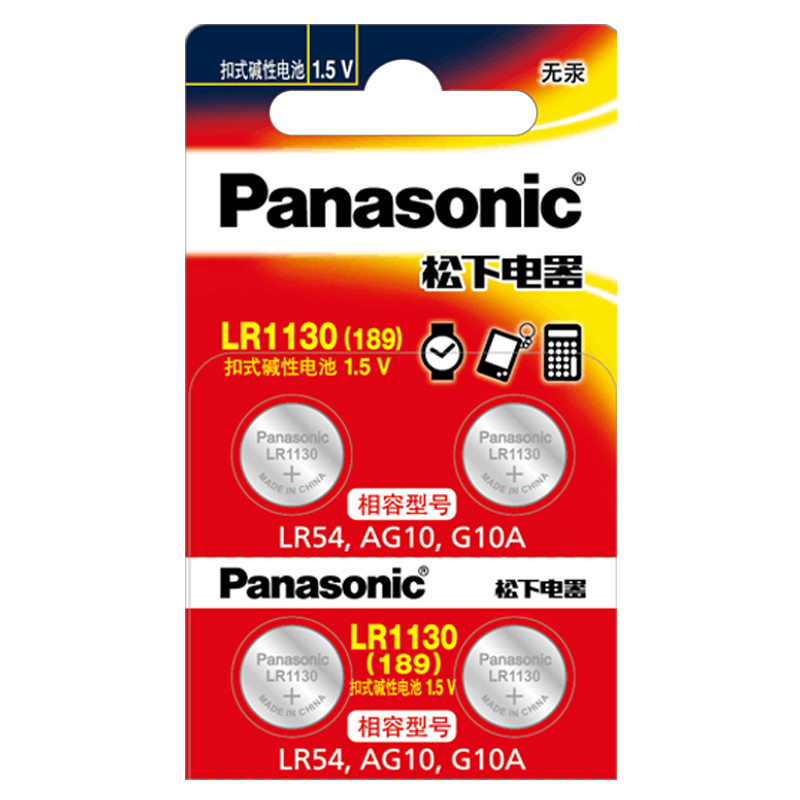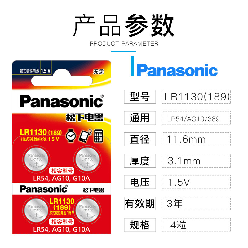 LR54 松下AG10小纽扣电池 LR1130 L1131 390电子手表适用于卡西欧计算器1.5v碱性189温度计激光笔玩具4粒 389