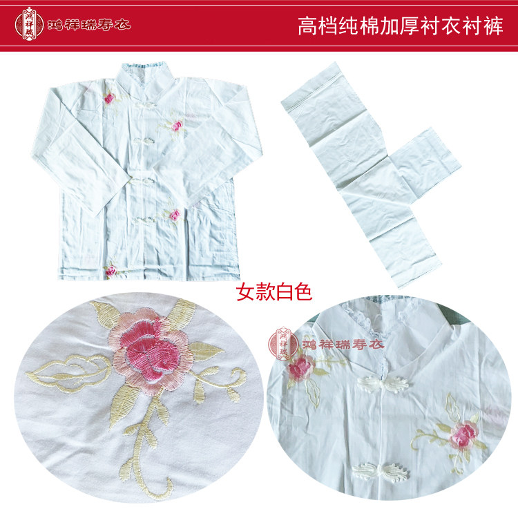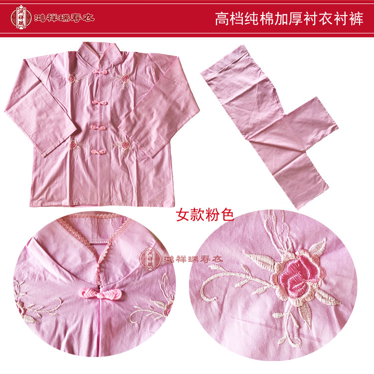男款 老人冲喜寿衣殡葬用品全棉白色粉色 纯棉刺绣女款 寿衣衬衣衬裤