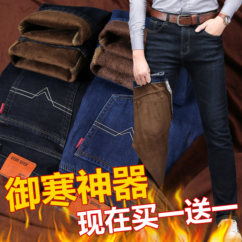 裤 男士 男加厚秋冬款 冬天宽松保暖外穿裤 子男冬季 子长裤 加绒牛仔裤由