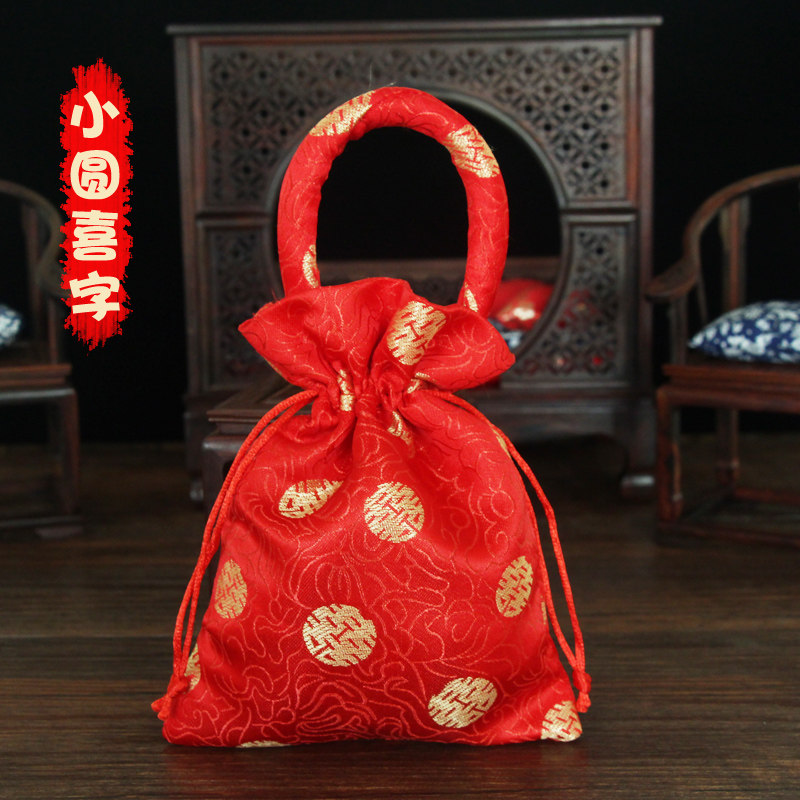结婚满月生日节庆织锦缎喜糖袋喜糖盒创意中式 糖盒婚庆糖果盒 包装由