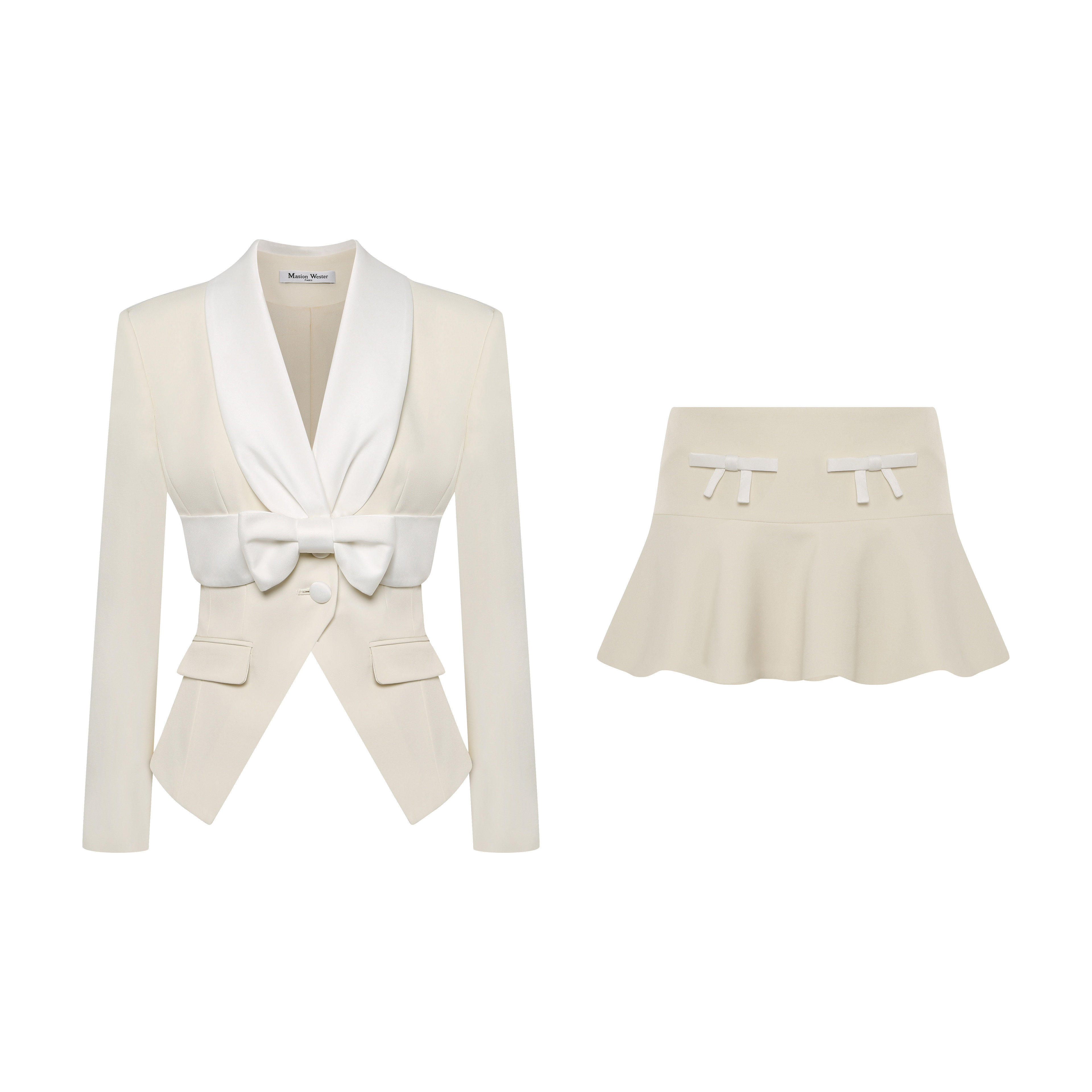 套装 Maison 外套小裙裤 米色蝴蝶结收腰小西装 Wester2025春季 新款