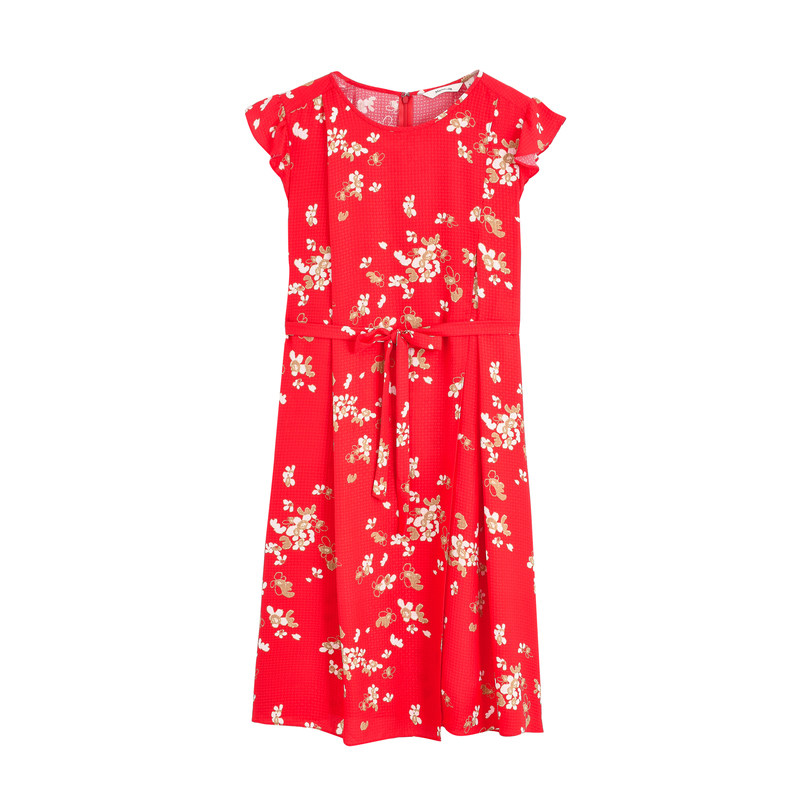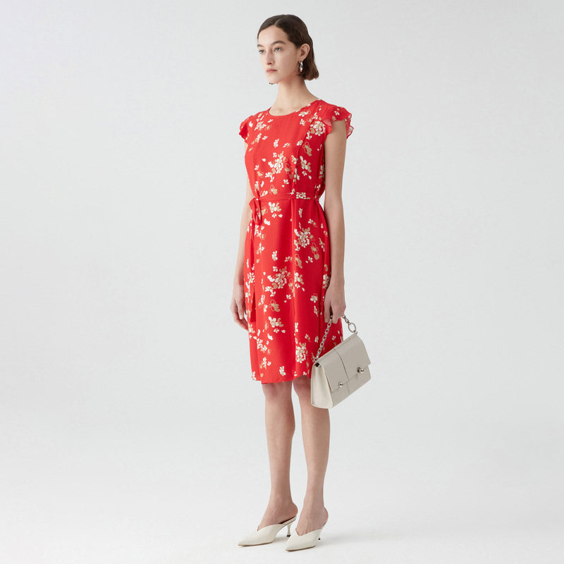新红色碎花桑蚕丝连衣裙裙子 玛丝菲尔夏季由