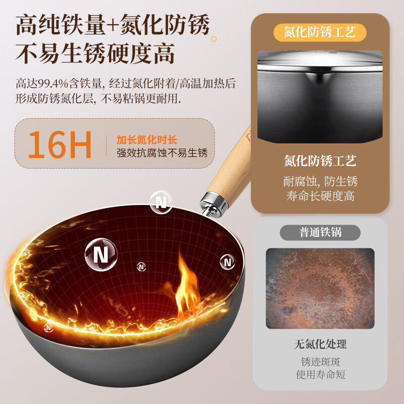 九阳铁锅无涂层炒锅家用炒菜锅不易粘锅电磁炉专用燃气灶旗舰店炊