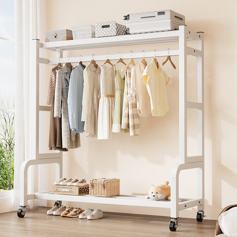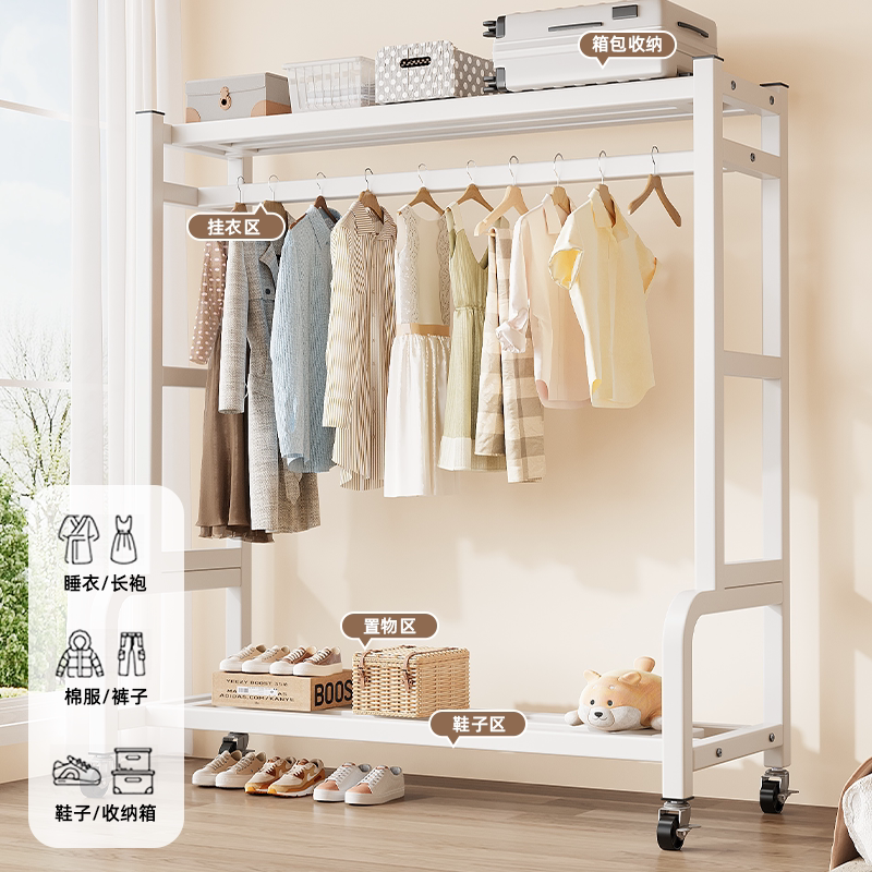 家用卧室阳台挂衣架简约 特粗双杆移动宿舍衣帽架特厚衣架落地立式