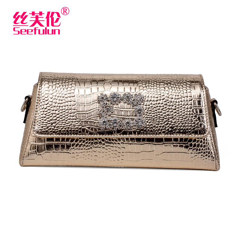 为您提供商品镶钻牛皮金色斜挎小包女包 高档质感鳄鱼纹真皮链条单肩腋下包时尚的详细介绍,