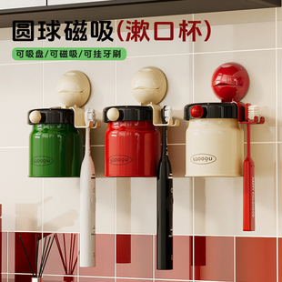 诺室吸盘牙刷置物架磁吸漱口杯牙刷牙杯子卫生间壁挂式 洗漱杯套装