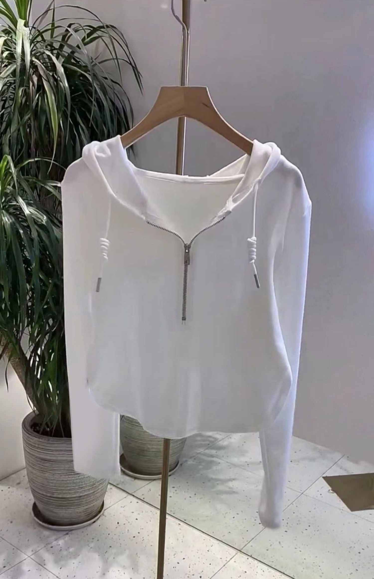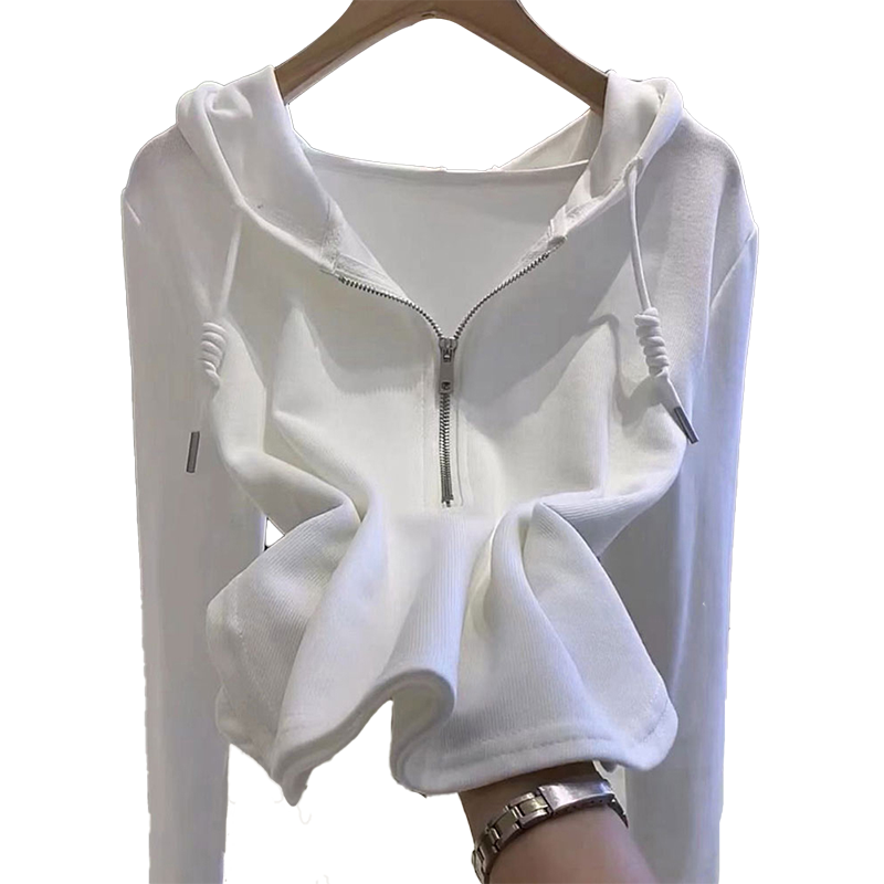 为您提供商品小众设计感连帽短款 欧洲站白色打底衫 女春秋款 冬季 t恤上衣服 长袖的详细介绍,