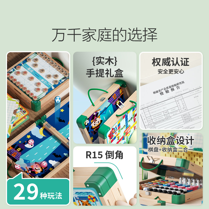 多合一棋类益智玩具五子棋游戏生日礼物 木质飞行棋多功能棋盘套装