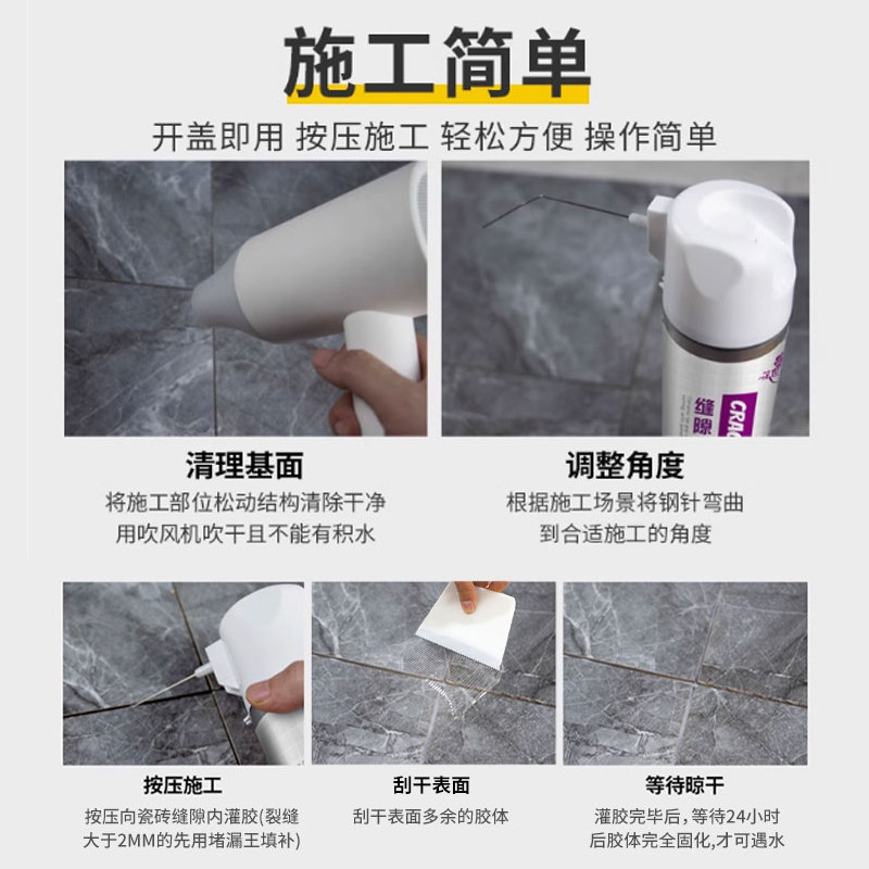 卫生间防水补漏材料透明免砸砖渗透剂水性涂料瓷砖缝隙堵王填缝胶由