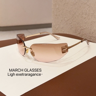 粉色无框曲面韩版 张元 英同款 窄版 甜妹防晒太阳眼镜 墨镜女高级时尚