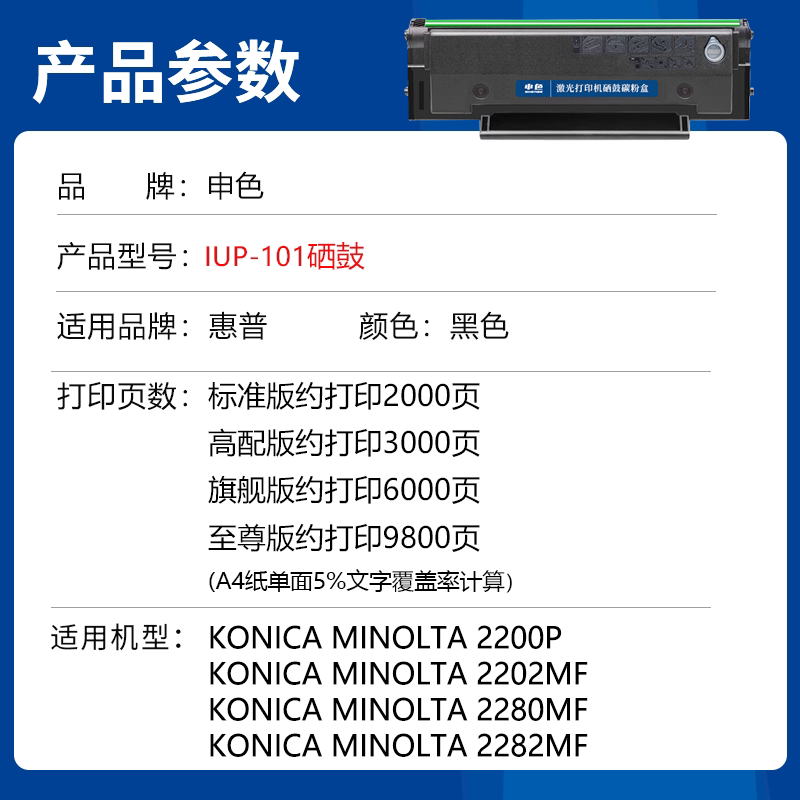 为您提供商品申色适用柯尼卡美能达IUP 2280MF打印机墨盒柯美激光碳粉盒bizhub晒鼓易加粉芯片墨粉碳粉 P101硒鼓粉盒2200P的详细介绍,