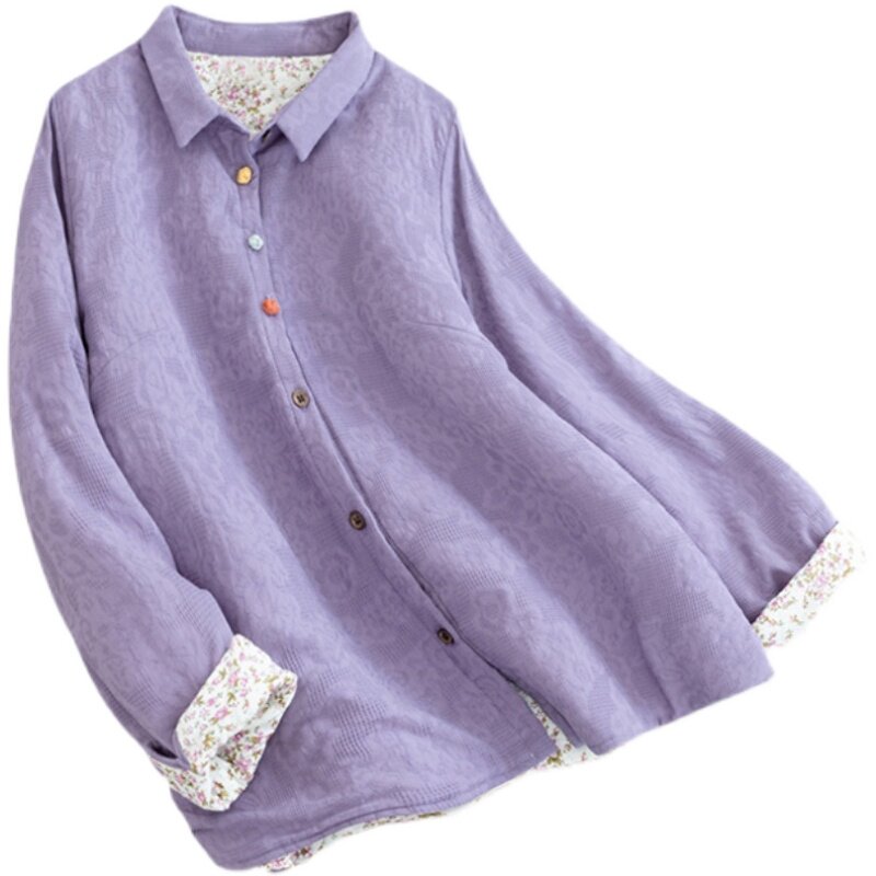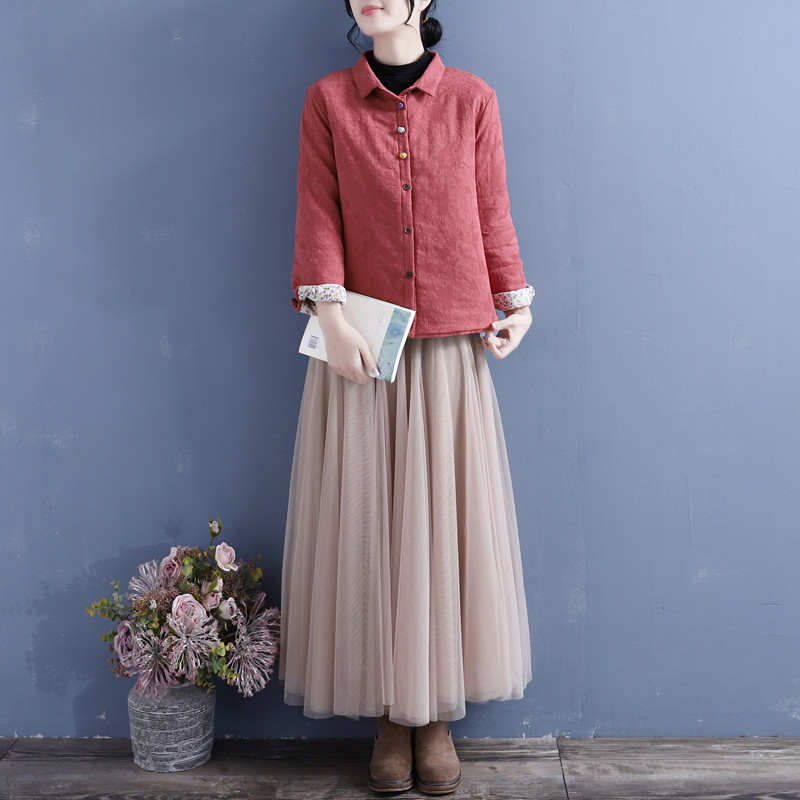 新款 宽松百搭复古中国风棉衣 加厚上衣女2021冬季 文艺棉麻夹棉衬衫