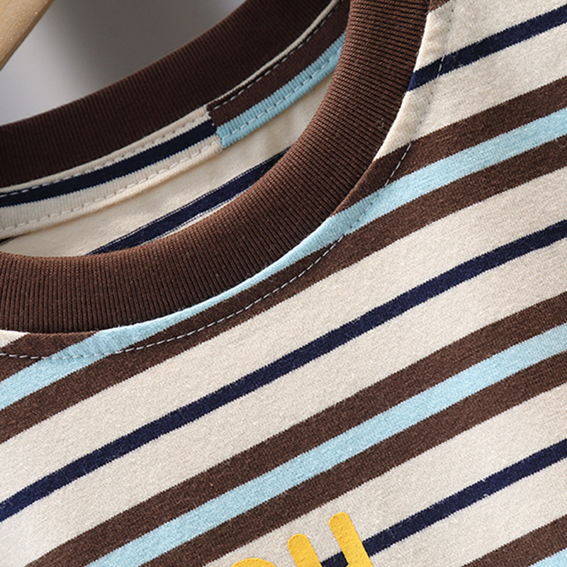宝宝复古上衣3儿童体恤衫 T恤男女童2026夏装 小童潮牌卡通条纹短袖由