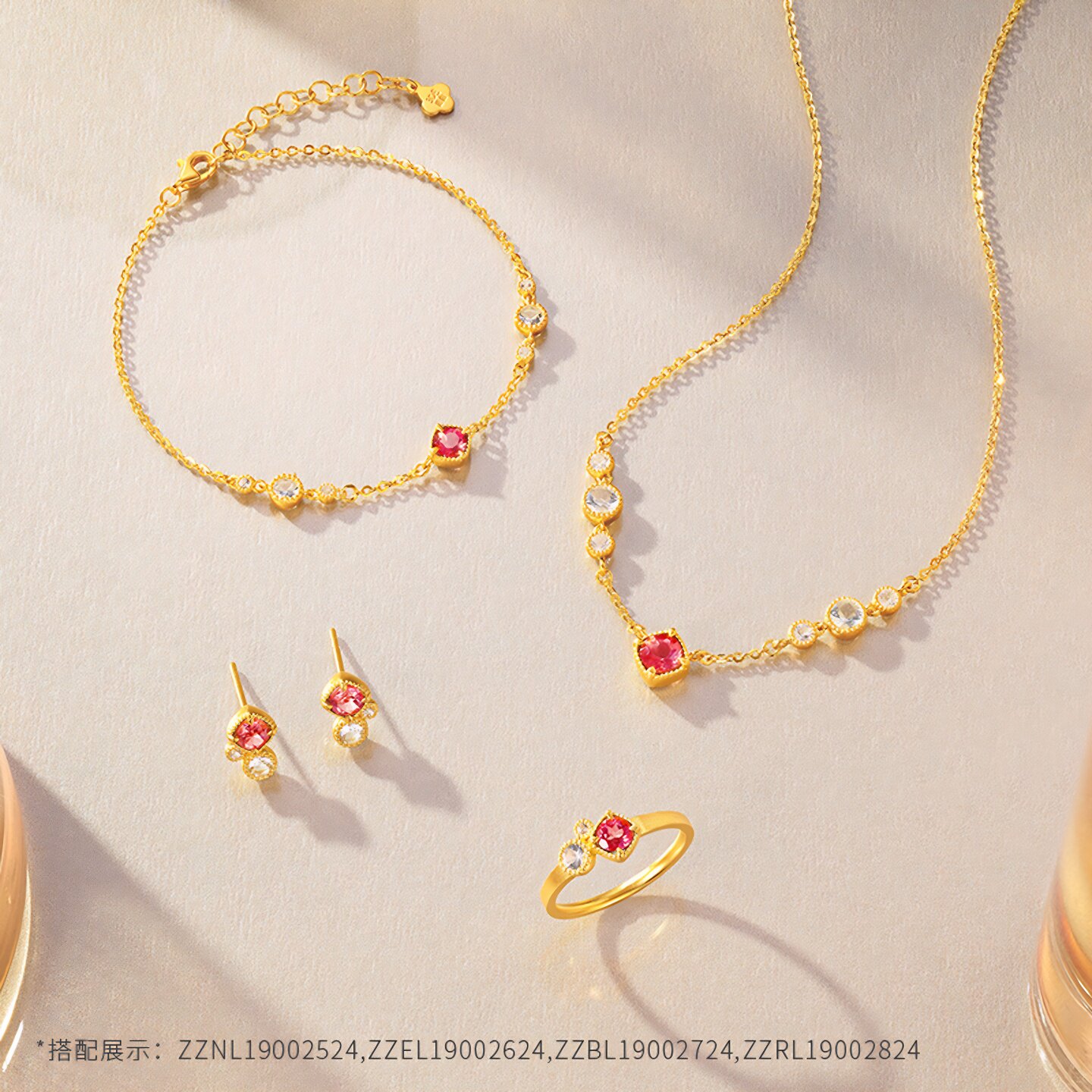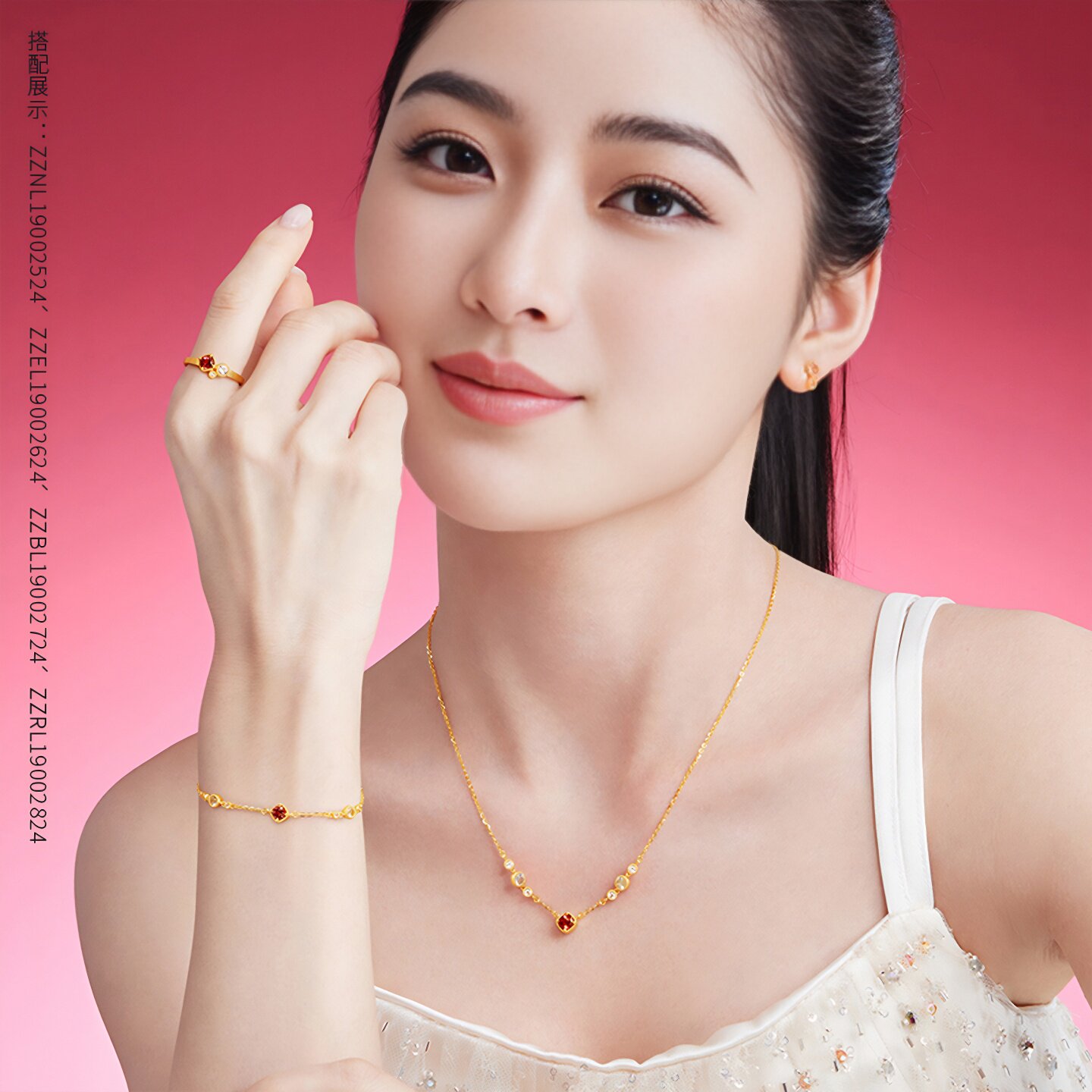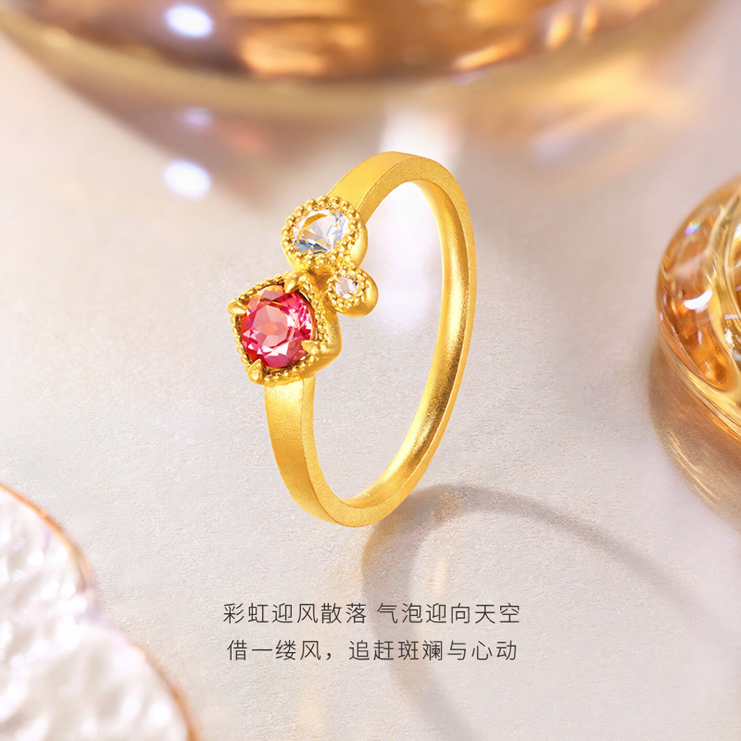 周六福黄金戒指女梦幻花蝶蝴蝶5G足金红宝石黄金镶嵌官方旗舰店