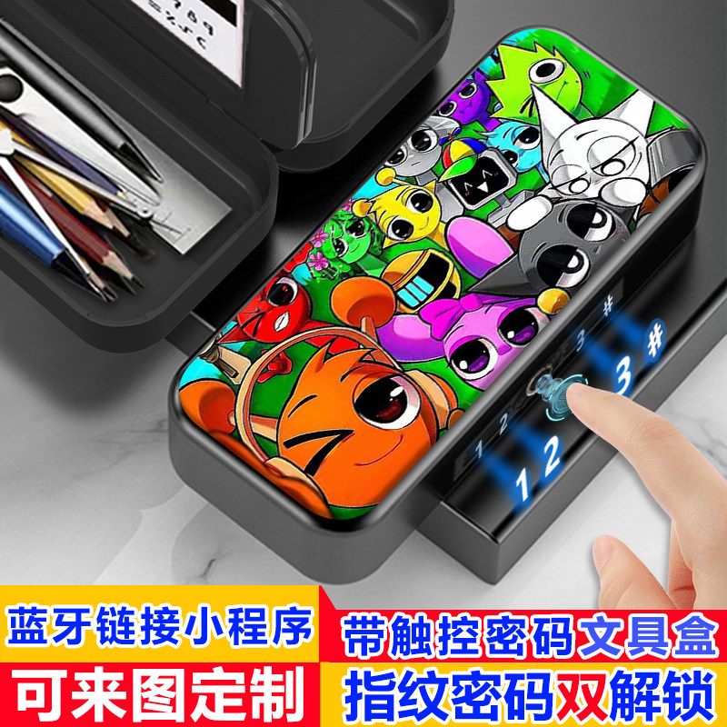 双解锁文具盒小学生密码 解锁铅笔盒男女 指纹密码 Sprunki节奏盒子由