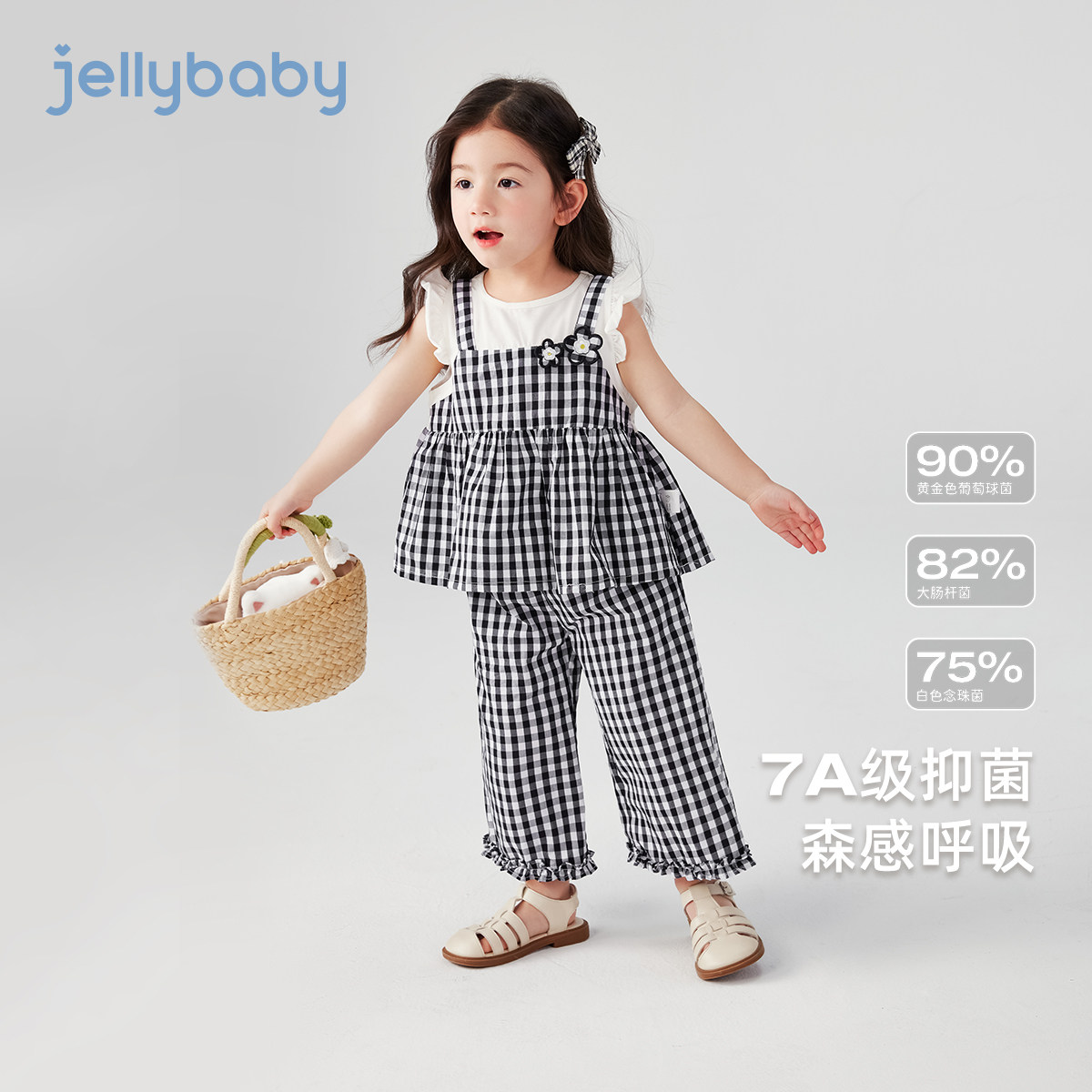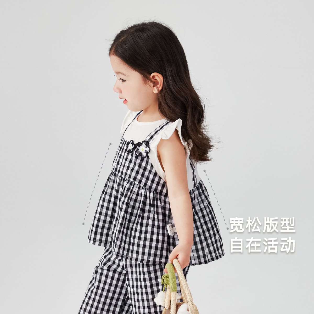 两件套儿童格子夏装 5宝宝洋气衣服 3小童法式 套装 7A抗菌 女童夏季