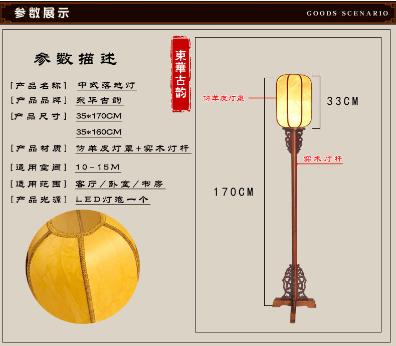 为您提供商品中式 禅意台灯客厅餐厅书房 落地灯花梨色仿古落地复古实木灯罩立式的详细介绍,