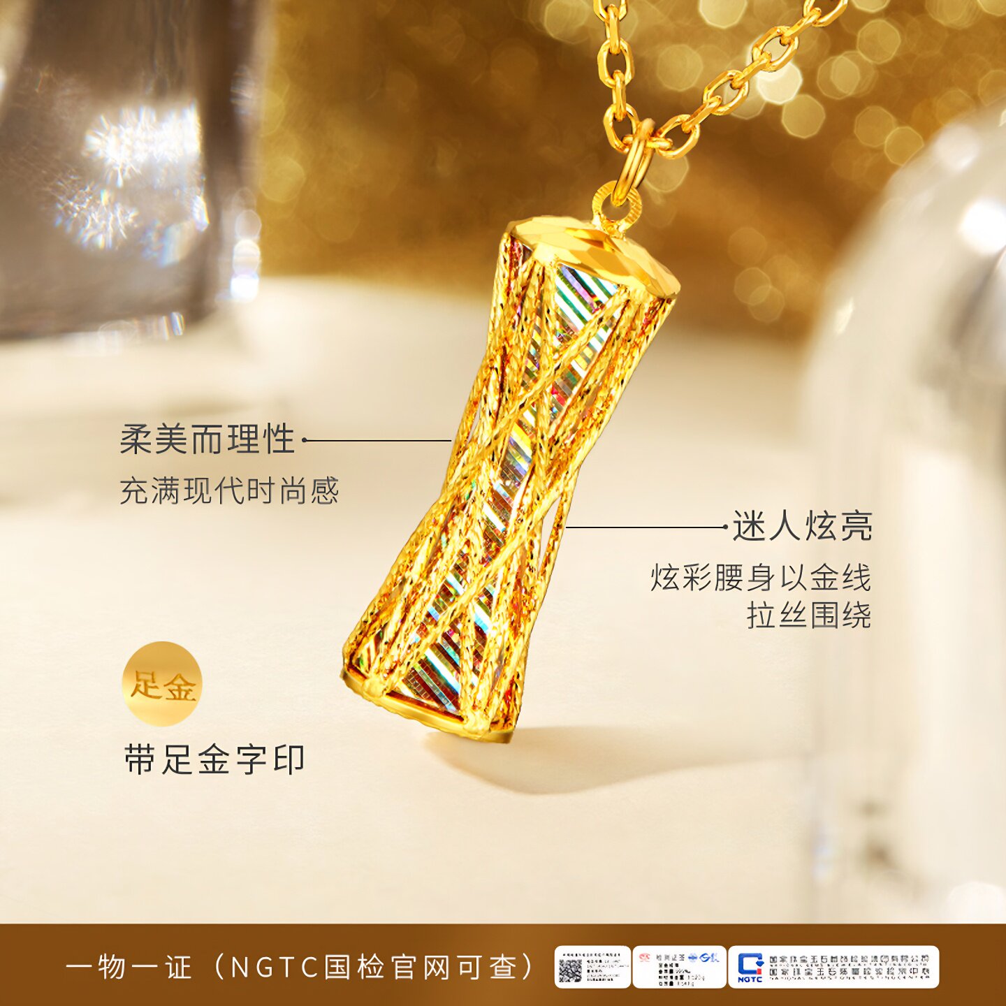 计价 潮宏基臻金弘足金项链5G拉丝黄金坠链丝绒葫芦钱币礼物新年