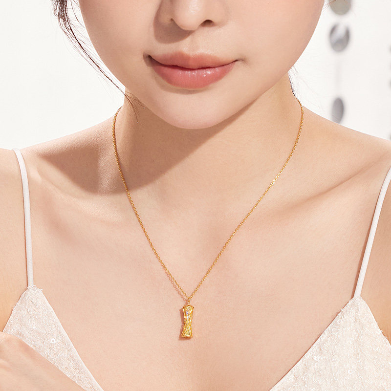 周六福5G黄金项链女计价足金爆闪方糖链坠节日礼物官方旗舰店