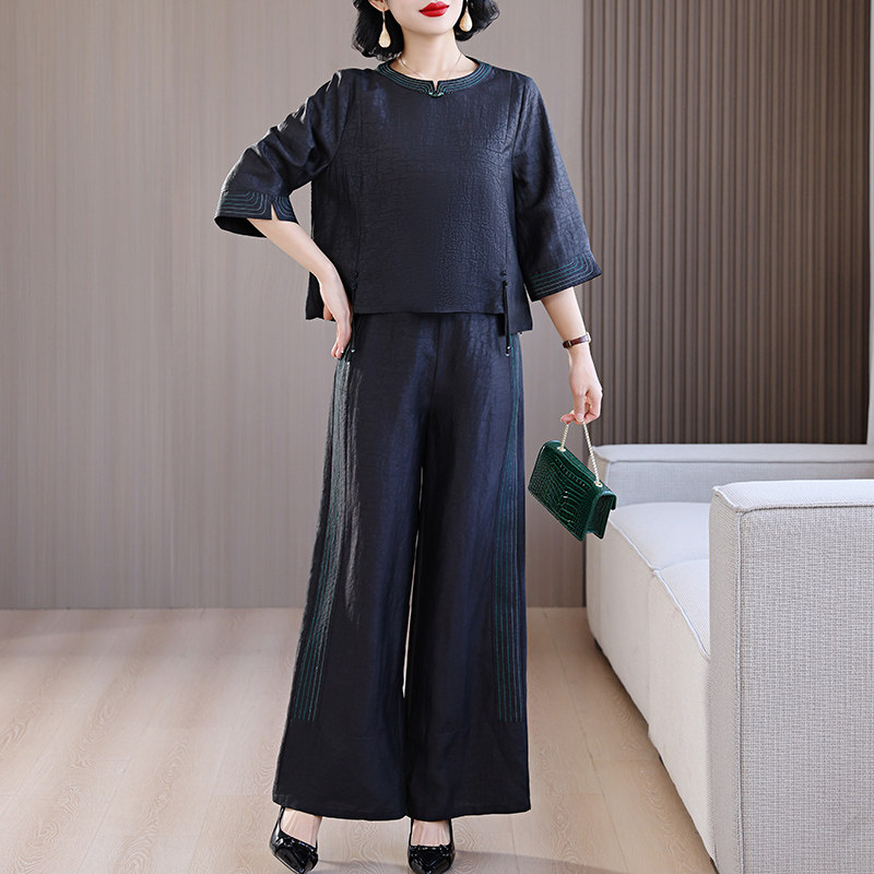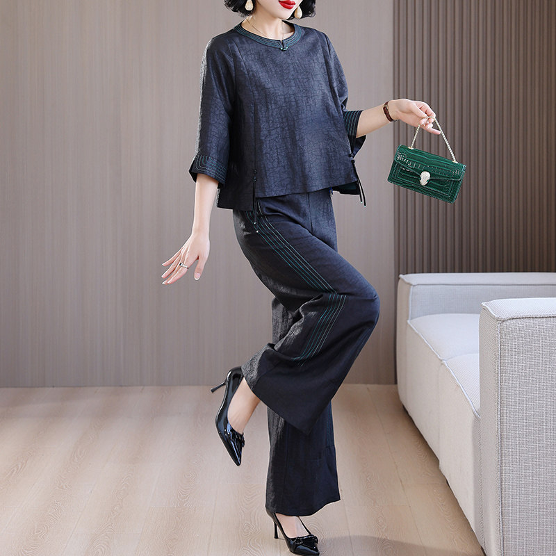 为您提供商品宽松上衣阔腿裤 香云纱两件套女2025夏季 新款 桑蚕丝真丝套装 妈妈装的详细介绍,