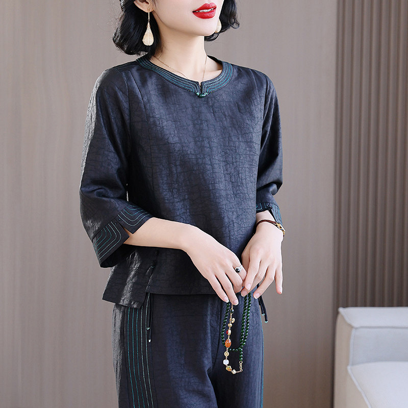 国风上衣时尚 新中式 套装 妈妈春装 早秋外套马甲 三件套中老年女装
