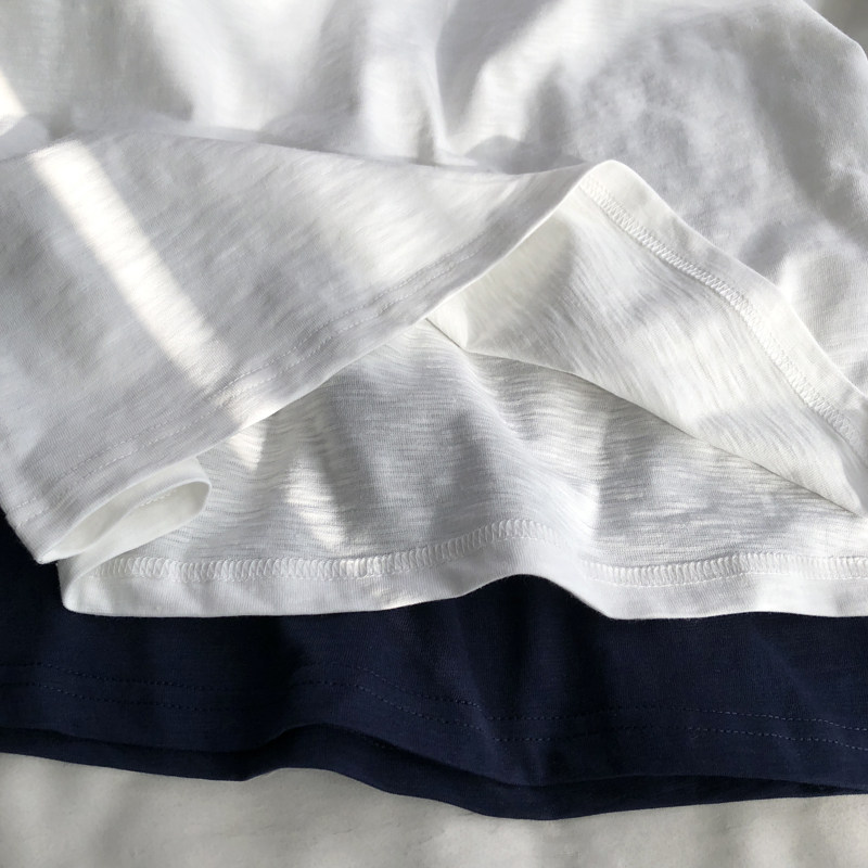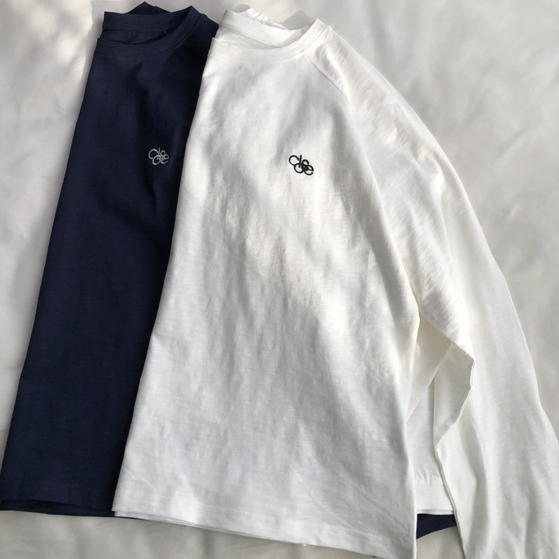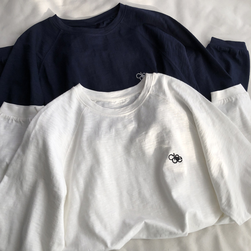 竹节棉t恤圆领休闲上衣春 简约刺绣小字母插肩长袖