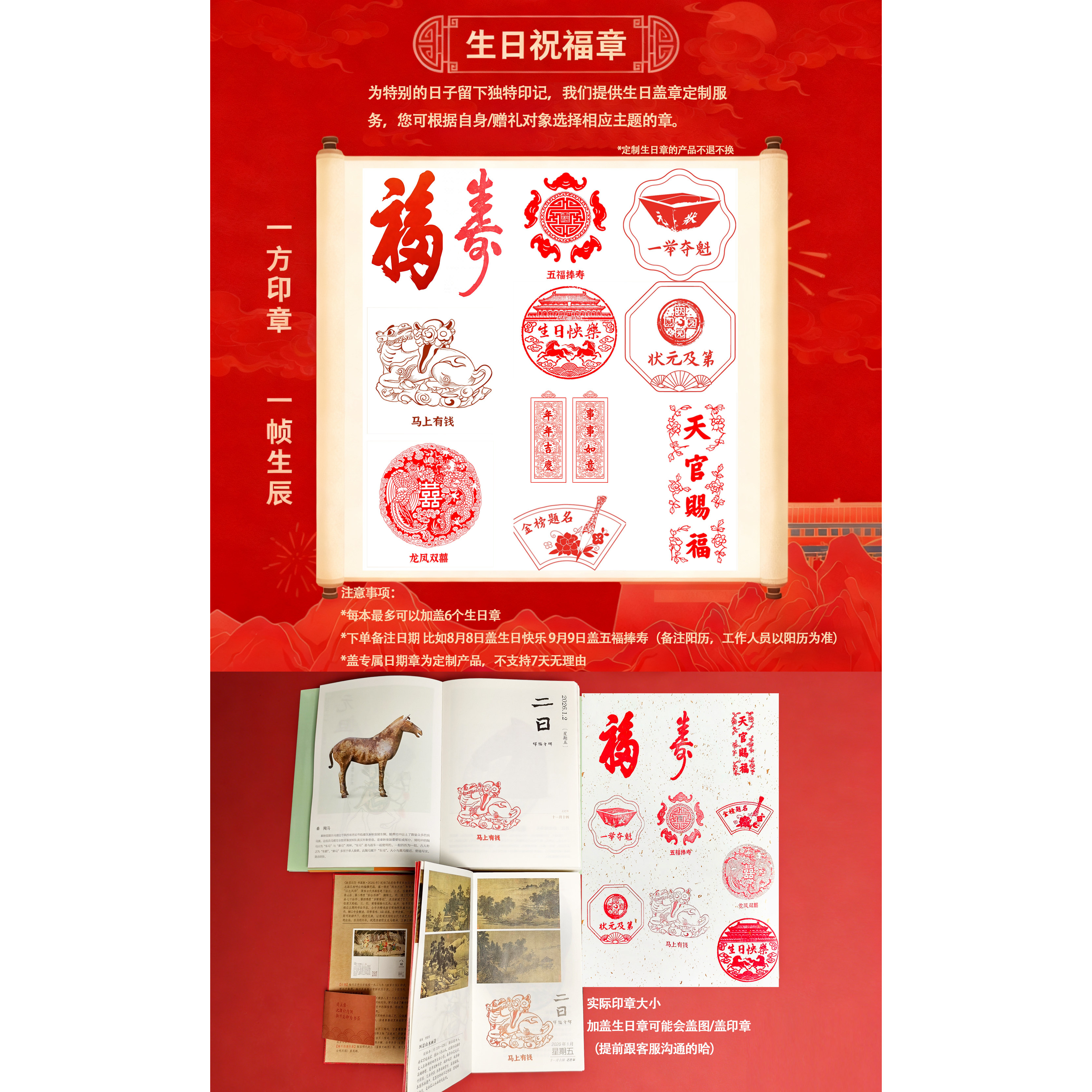 2026马年故宫文创书画版 339枚指定生日章三八女神节 日历盖章版