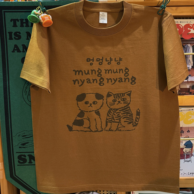 纯棉265克重磅圆领情侣T恤短袖 美式 小猫咪 可爱 复古 vintage