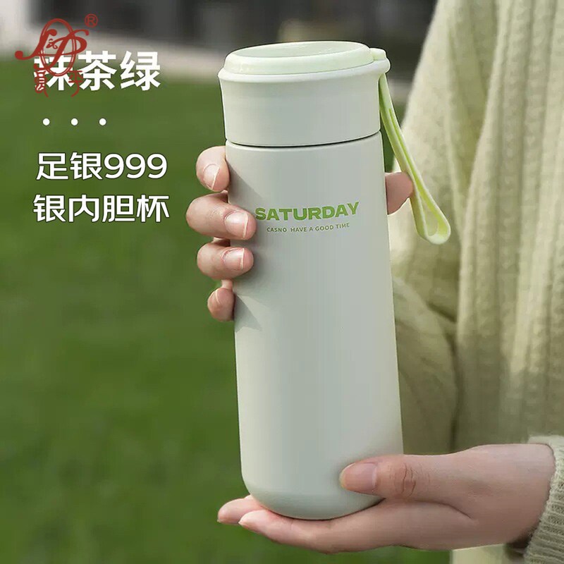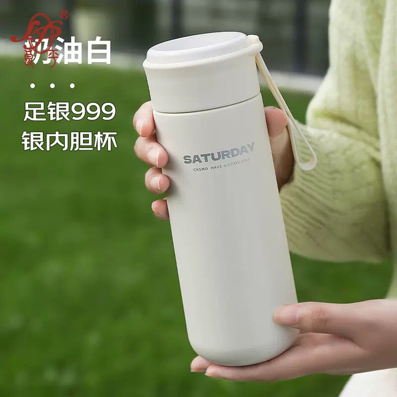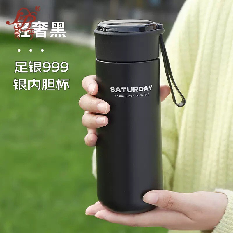 便携过滤泡茶车载杯子 足银999保温杯女生高颜值简约轻奢水杯男士