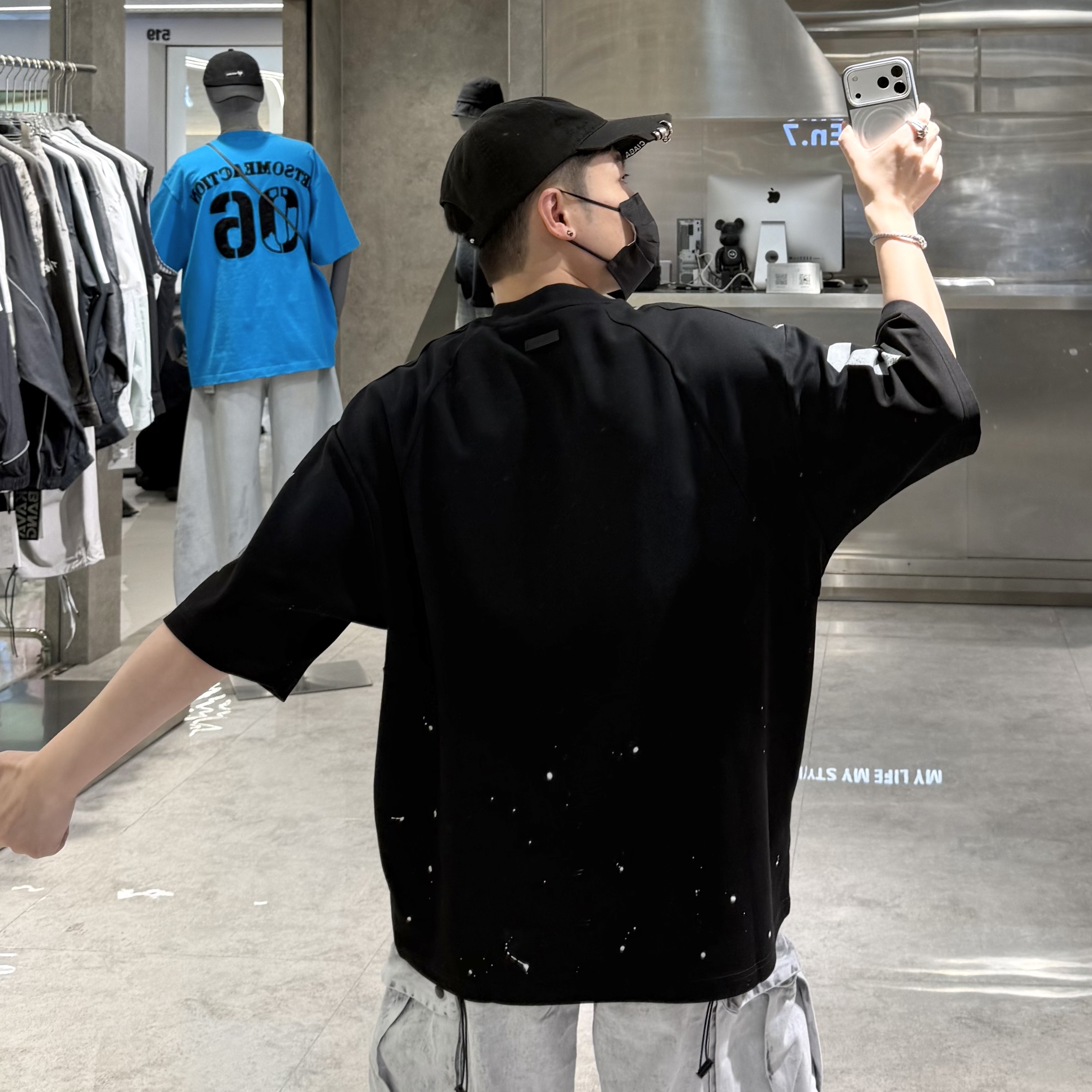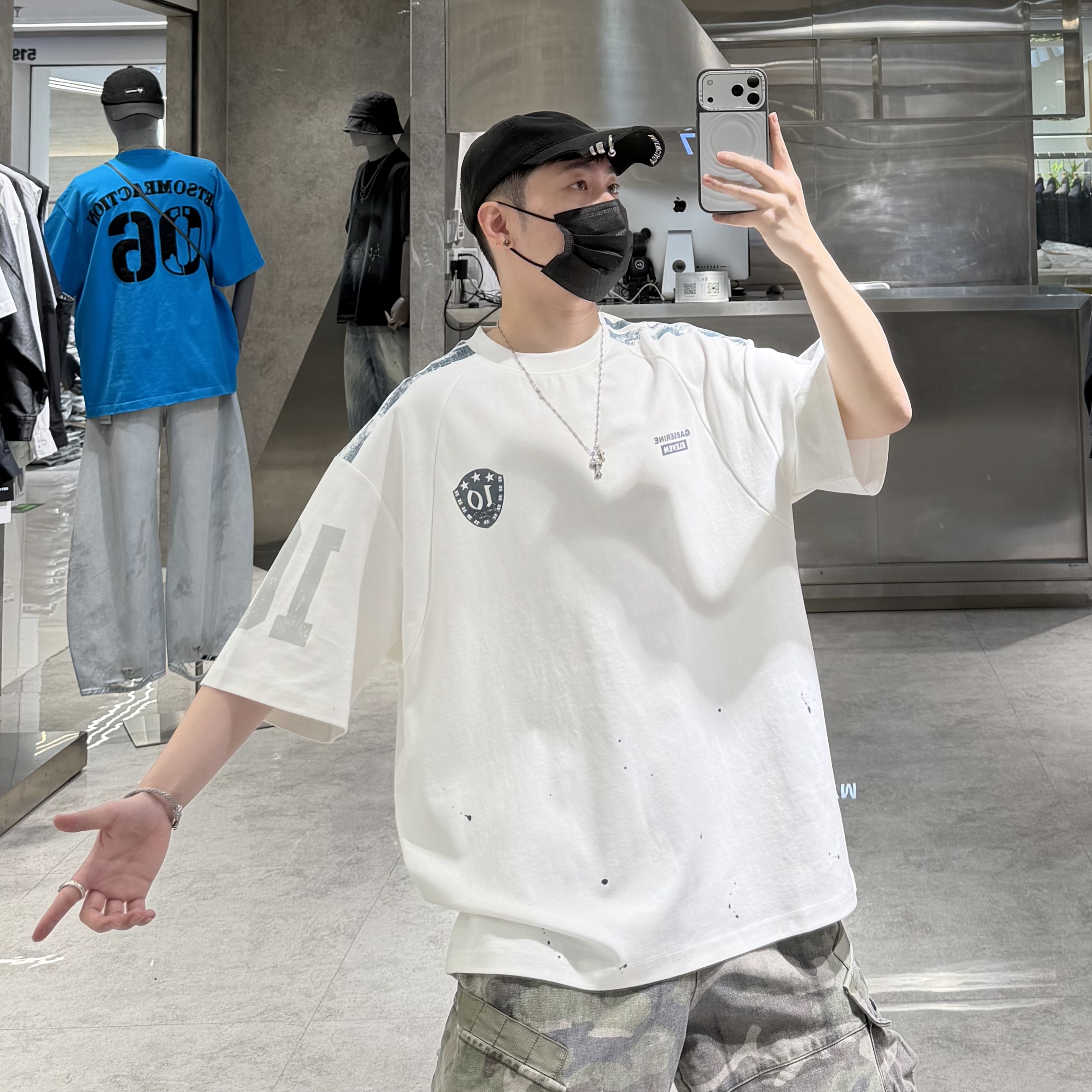 巴黎字母印花宽松嘻哈青年痞帅半袖 潮t T恤男美式 潮牌春夏重磅短袖