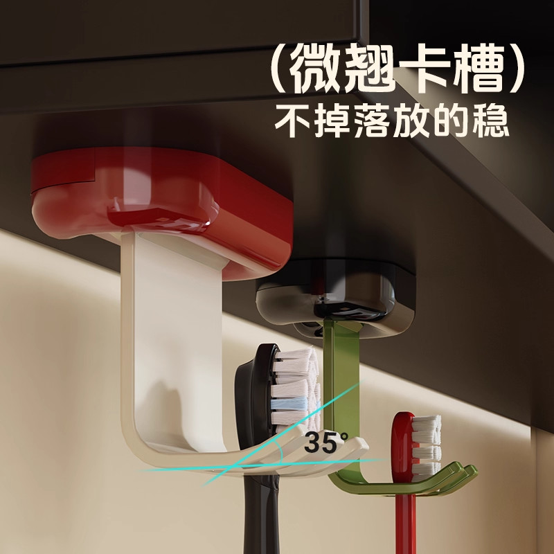 免打孔挂钩卫生间电动牙具放置收纳支挂架 镜柜下牙刷置物架壁挂式
