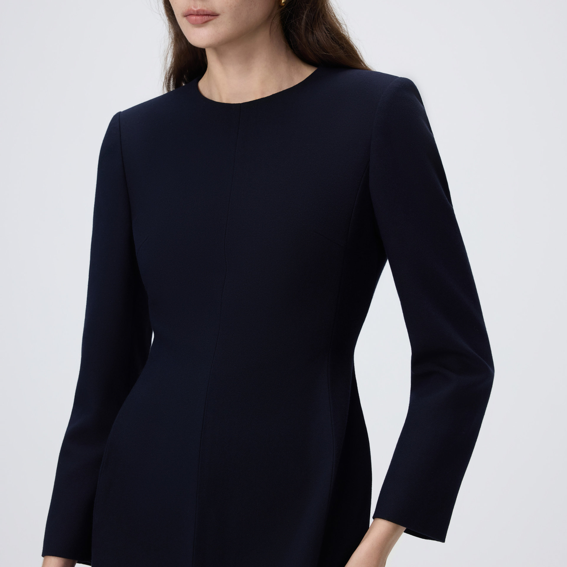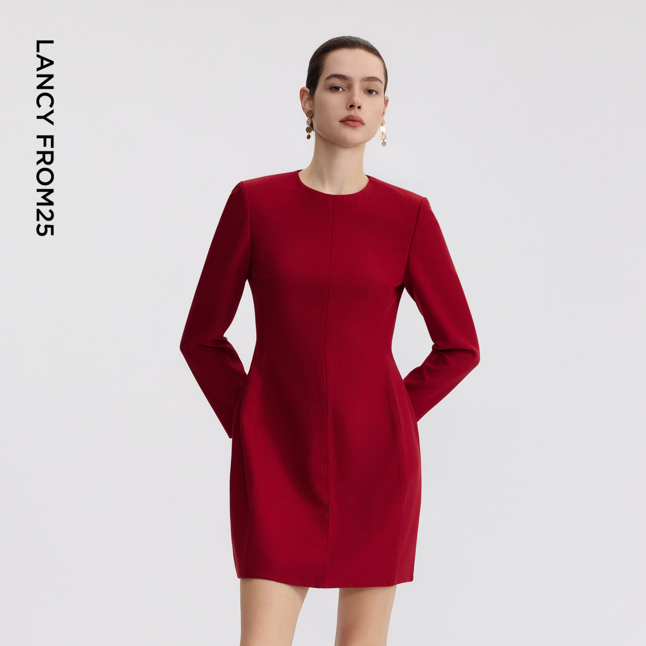 为您提供商品新款 A字裙摆裙子2026年春季 朗姿圆领简约优雅收腰连衣裙正肩修身的详细介绍,