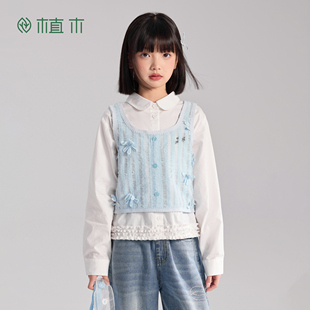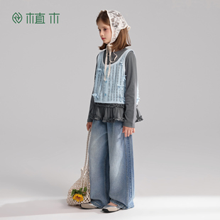 儿童宽松针织背心2026春新款 植木 小蓝花 女童背心马甲短款 童装