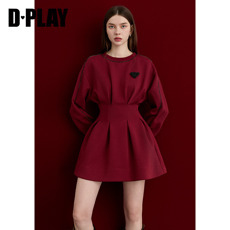 DPLAY秋季 红色连衣裙女时尚 气质休闲卫衣裙子长袖 短裙 新款由