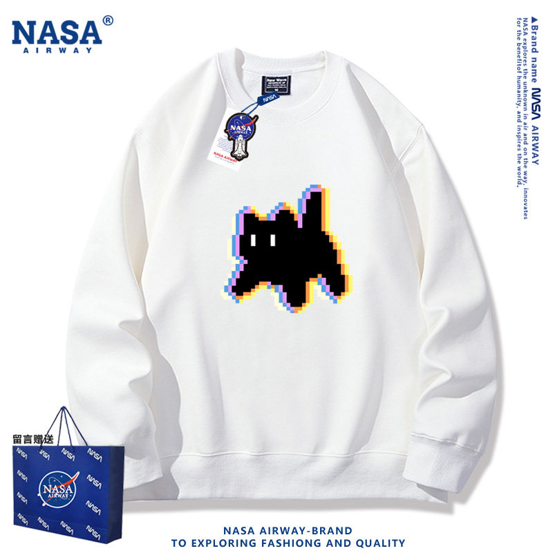 NASA联名像素小黑猫潮牌卡通图案男女生圆领卫衣薄款 外套 上衣新款由