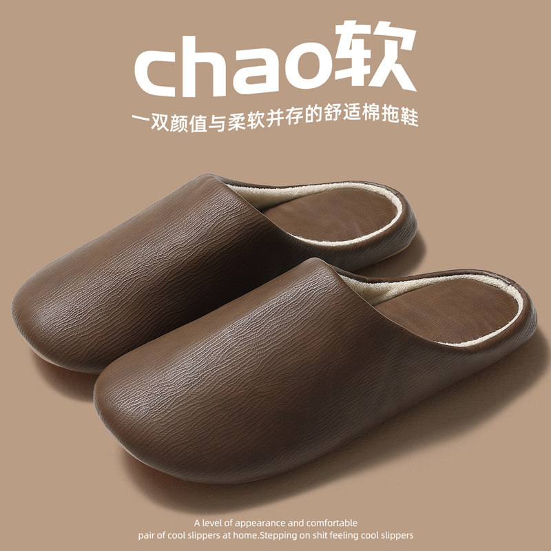 为您提供商品秋冬2025新款 室内家居软底防滑PU防水棉拖女 男士 高级感静音棉拖鞋的详细介绍,
