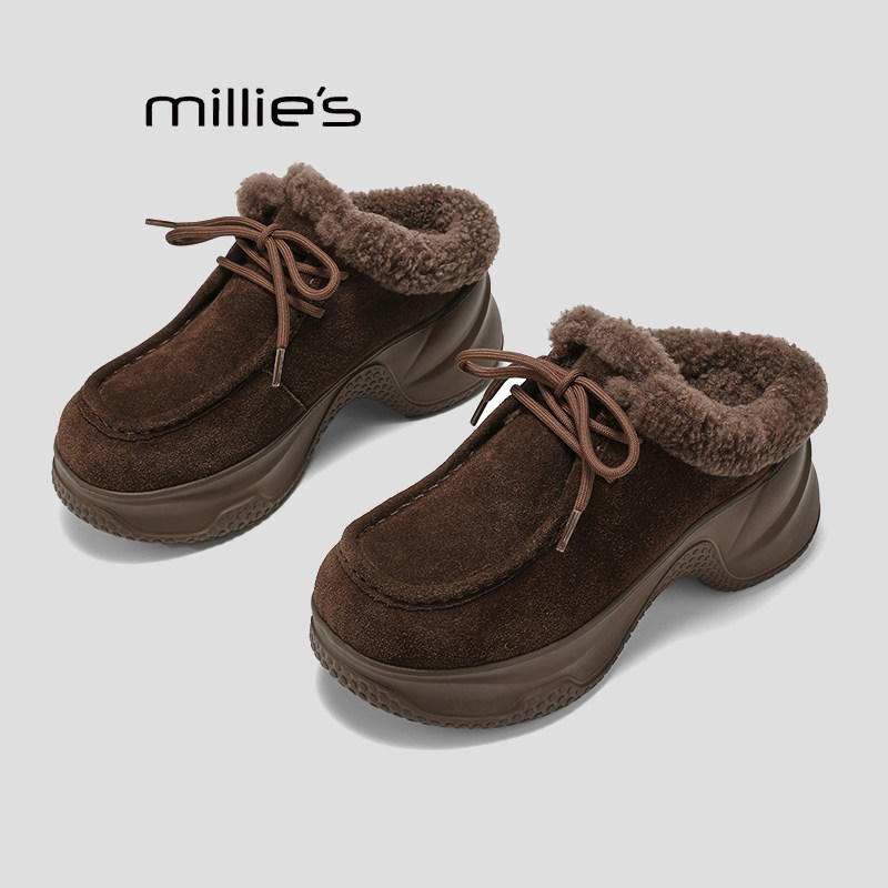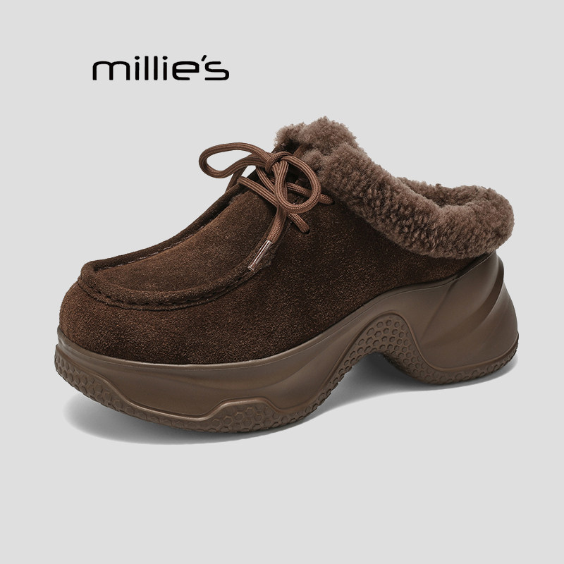 松糕跟高跟复古棉拖鞋 MILLIE 毛毛鞋 绒面2026爆款 妙丽秋冬款