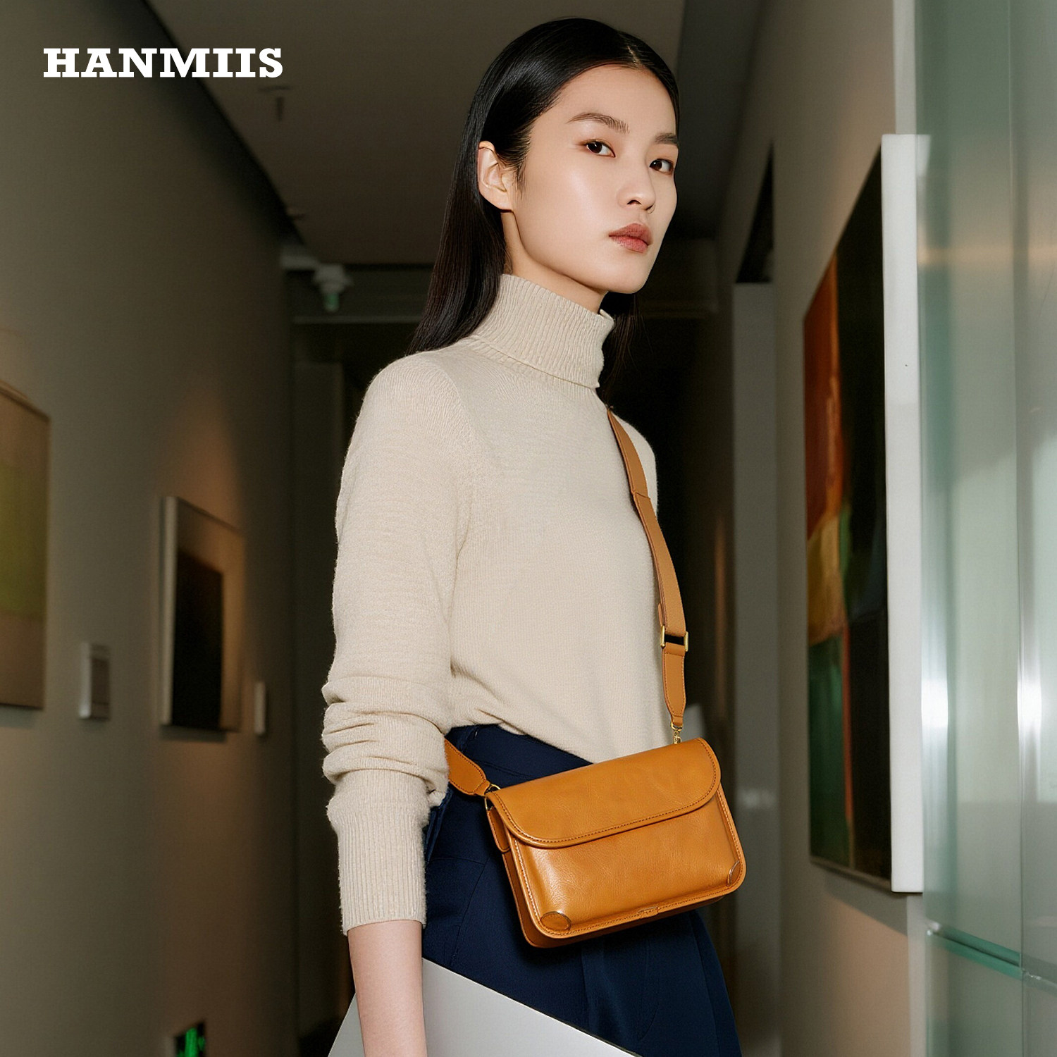 为您提供商品HANMIIS轻奢真皮斜挎小包手工植鞣牛皮男女单肩包休闲轻便手机包的详细介绍,