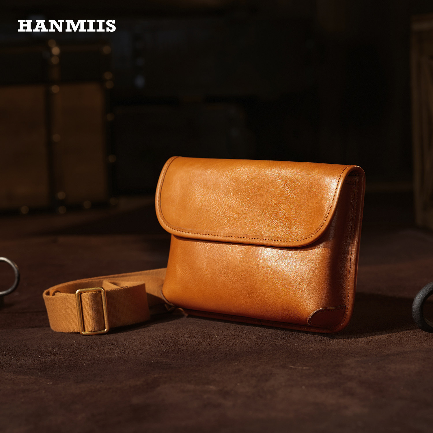 HANMIIS轻奢真皮斜挎小包手工植鞣牛皮男女单肩包休闲轻便手机包