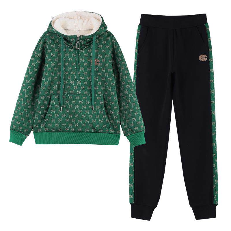 时尚 洋气花色连帽动卫衣休服两件 女冬厚闲新款 加742474绒加运套装由