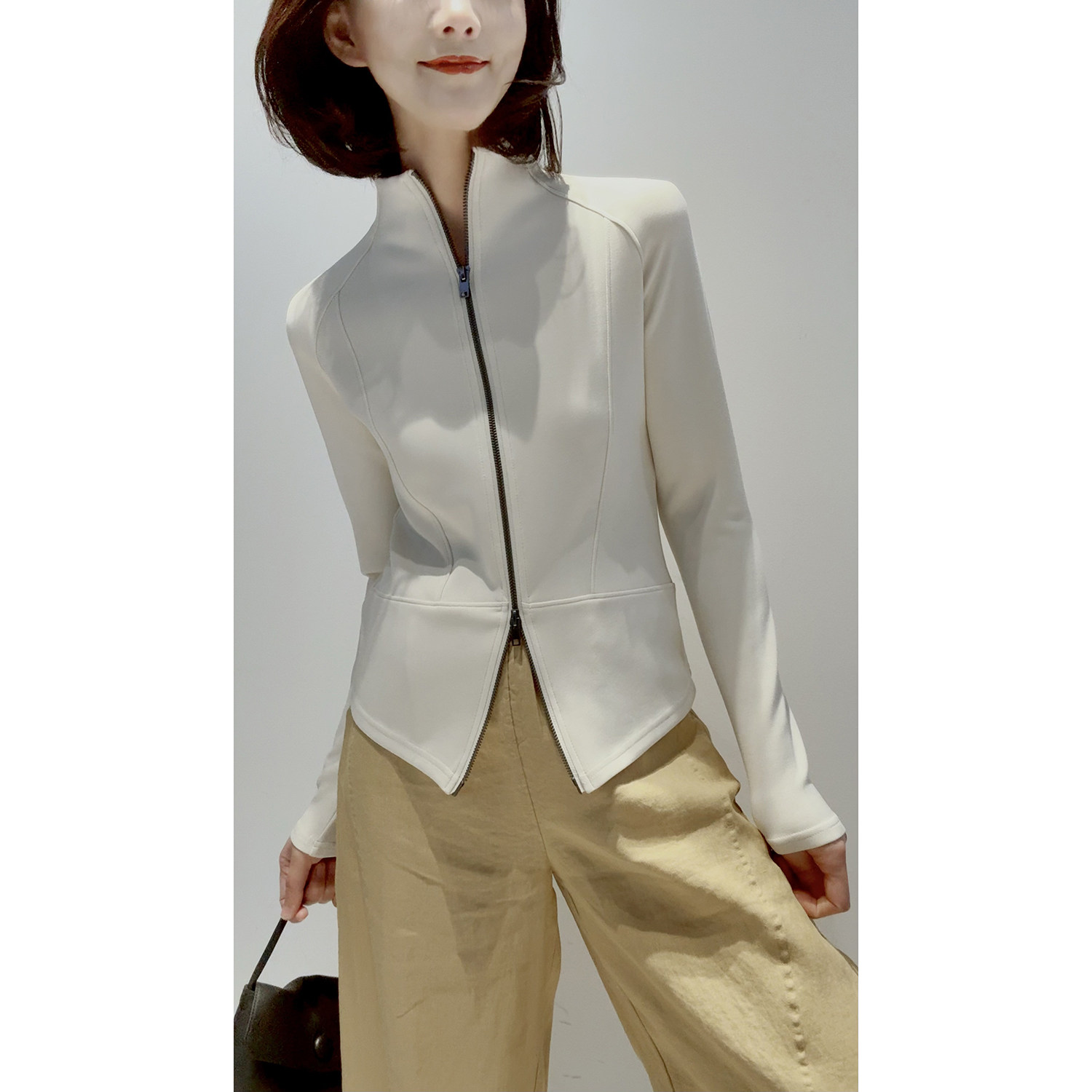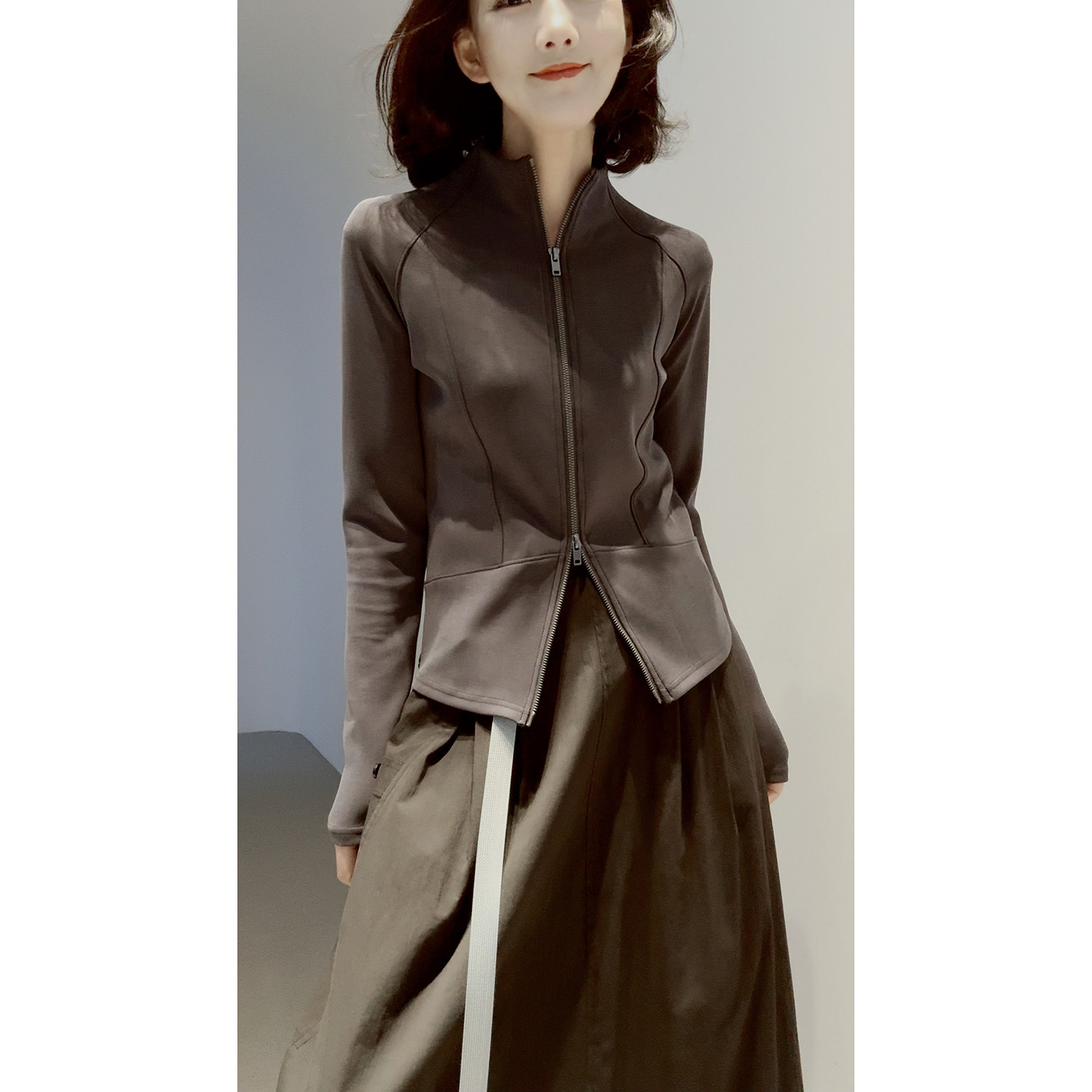 26春夏 莫代尔立领双开拉链 显瘦修身 百搭时髦外套女 轻盈Q弹