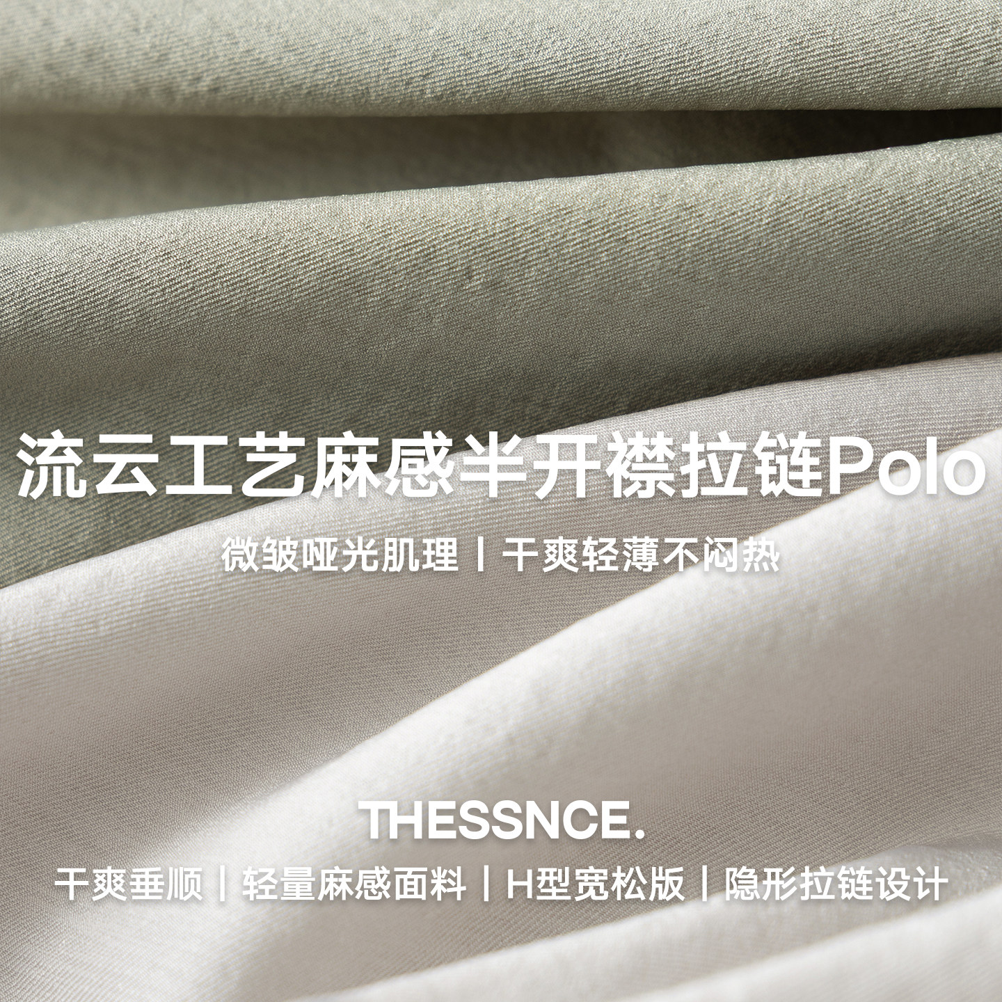 干爽麻感流云工艺 宽松H型半开襟翻领Polo衫 短袖 T恤 轻薄不闷热