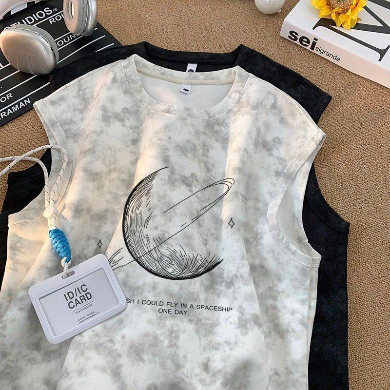 潮牌高街宽松百搭休闲无袖 潮流美式 扎染背心男士 夏季 t恤情侣半袖