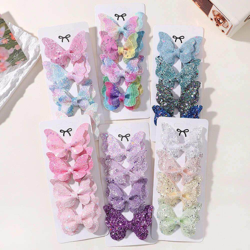 Bow 5Pcs Sequins Butterfly Double Girls Hair Clip Cute由