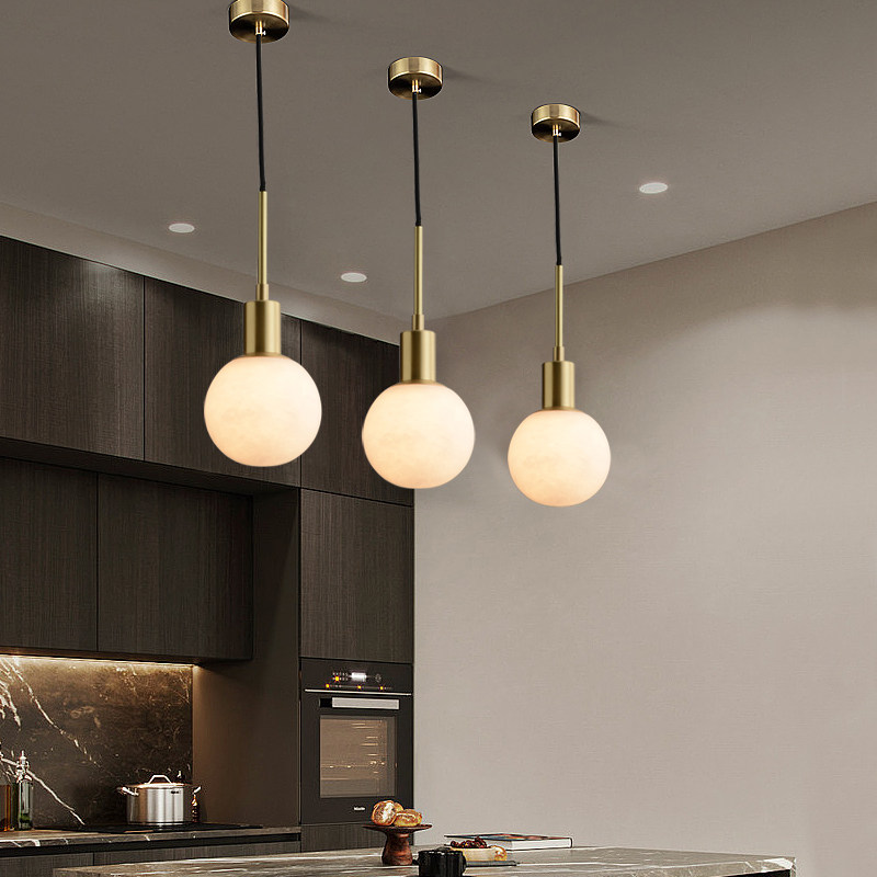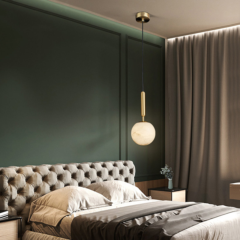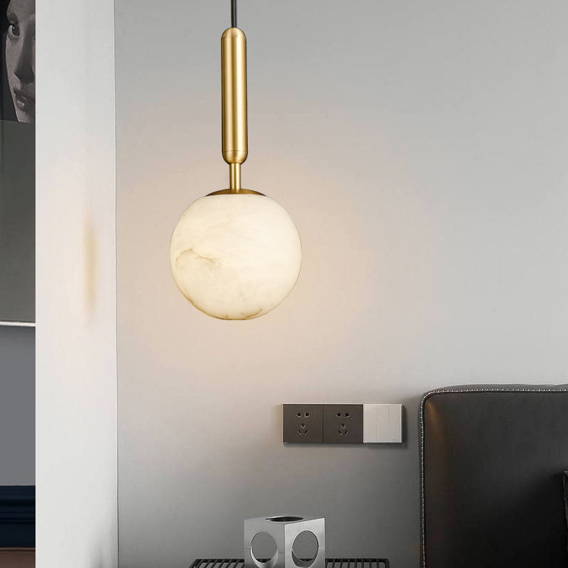 云石吊灯卧室床头灯全铜单头吧台书房轻奢小吊灯餐厅吊线灯 新中式