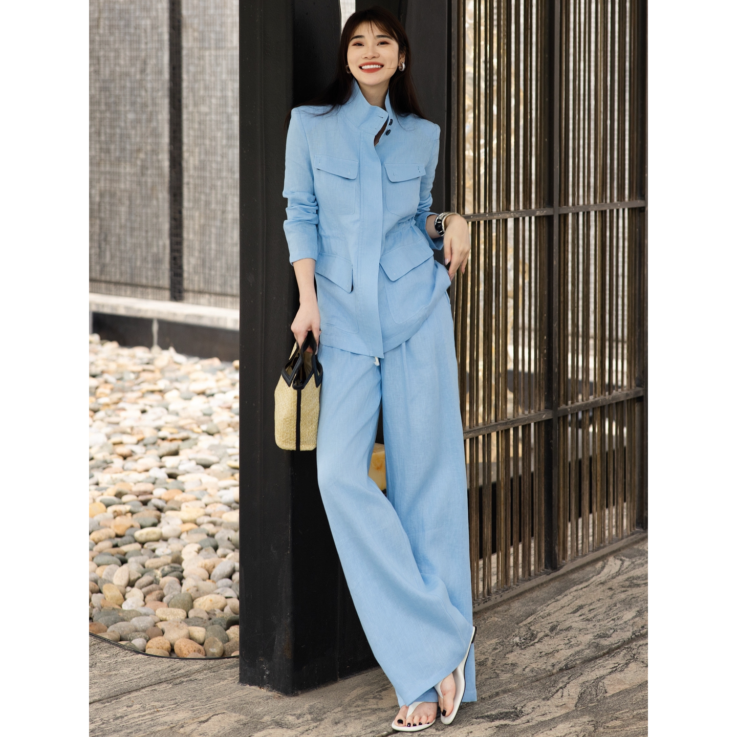 外套阔腿裤 2026夏季 新款 老钱风工装 两件套女士松弛感气质亚麻套装由