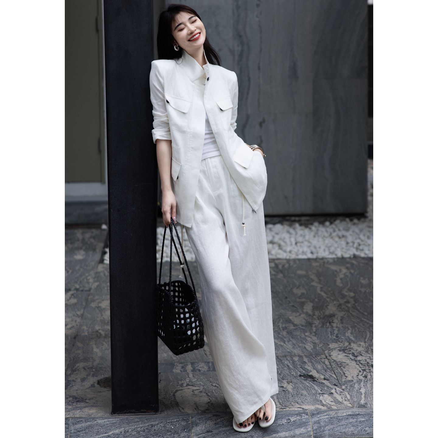 外套阔腿裤 2026夏季 新款 老钱风工装 两件套女士松弛感气质亚麻套装