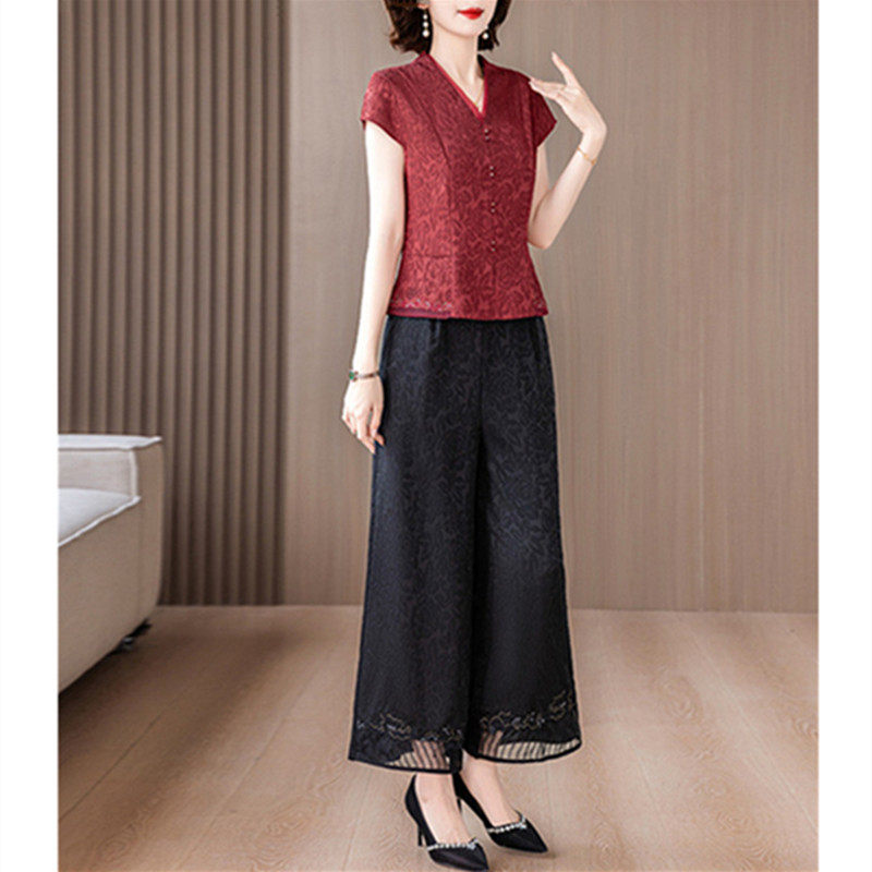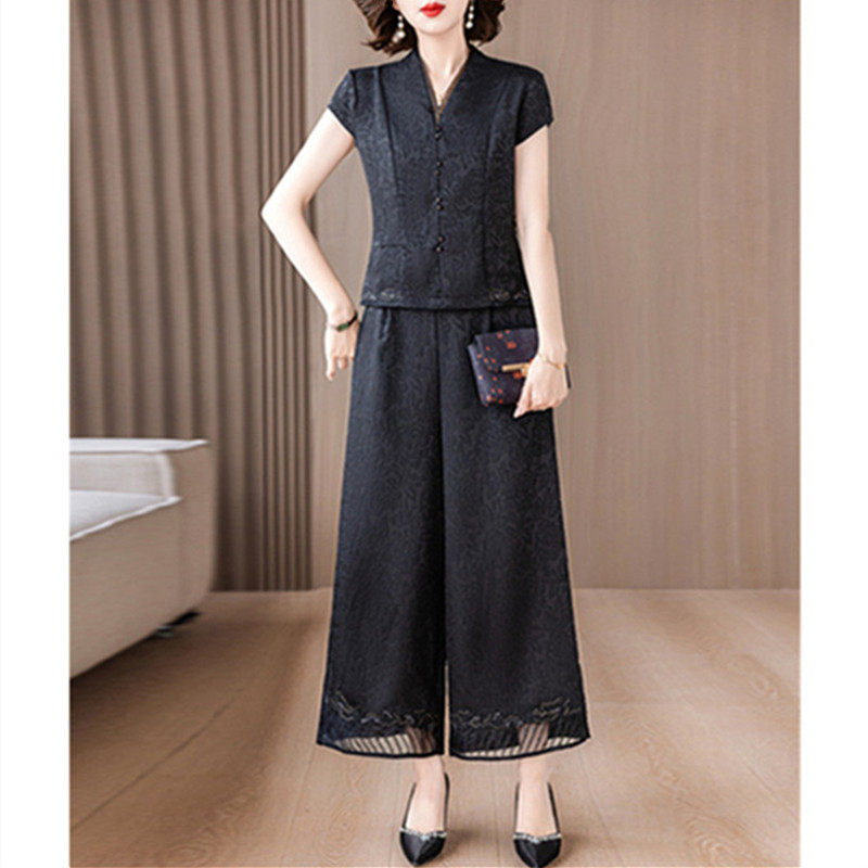高端时尚 国风香云纱上衣短袖 套装 女夏装 子两件套 桑蚕丝真丝阔腿裤由